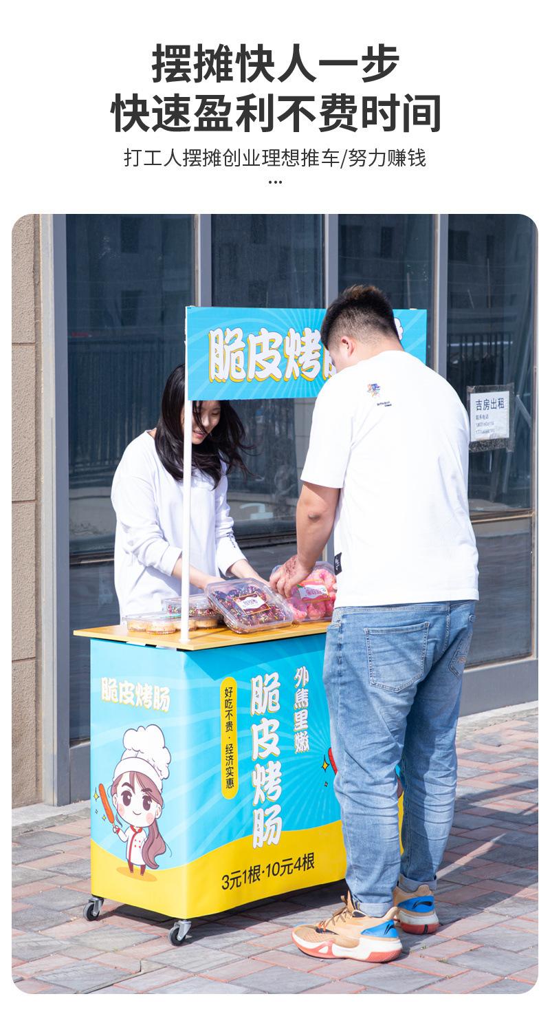 Carrito plegable portátil para puesto de polvo de hielo, carrito móvil para snacks y salchichas, puesto para mercado nocturno, estante, mesa, carrito promocional