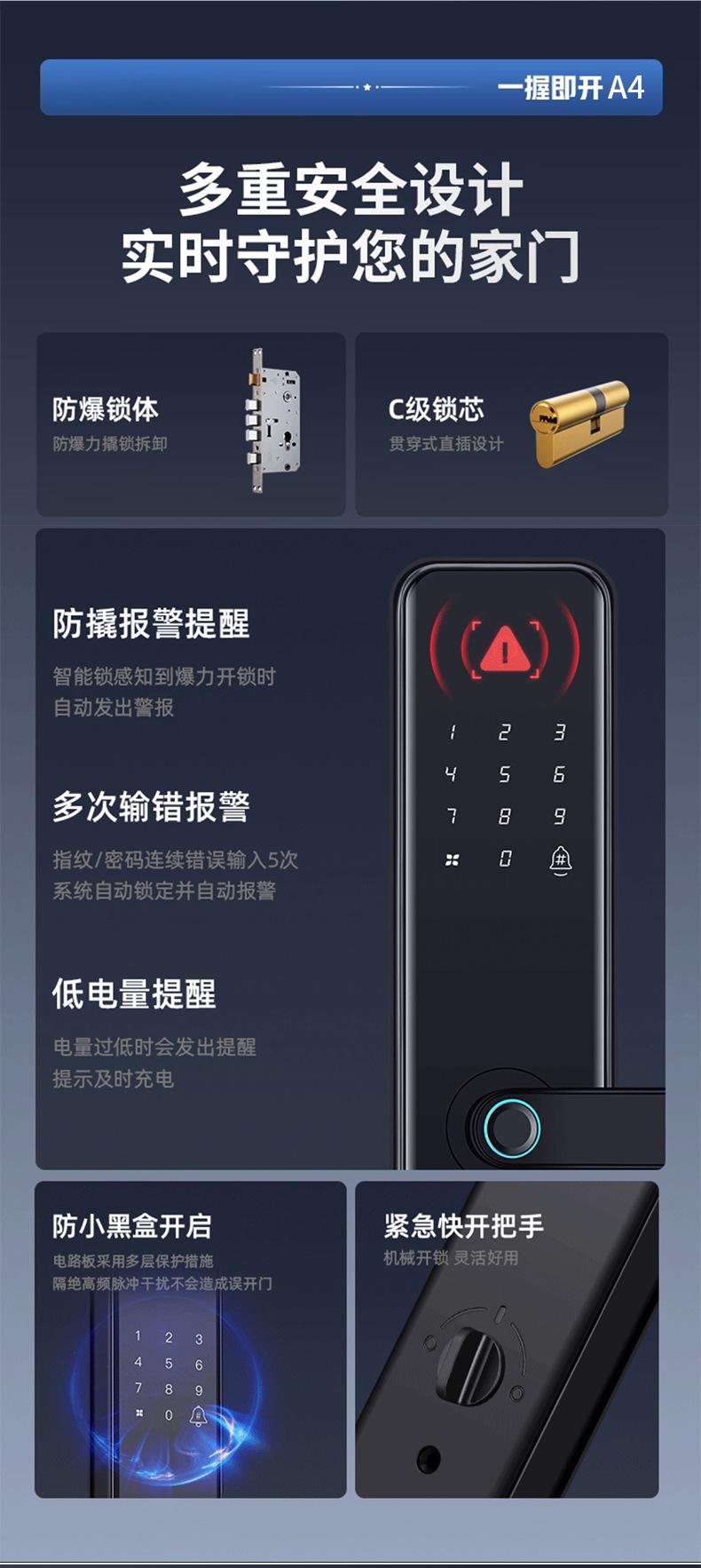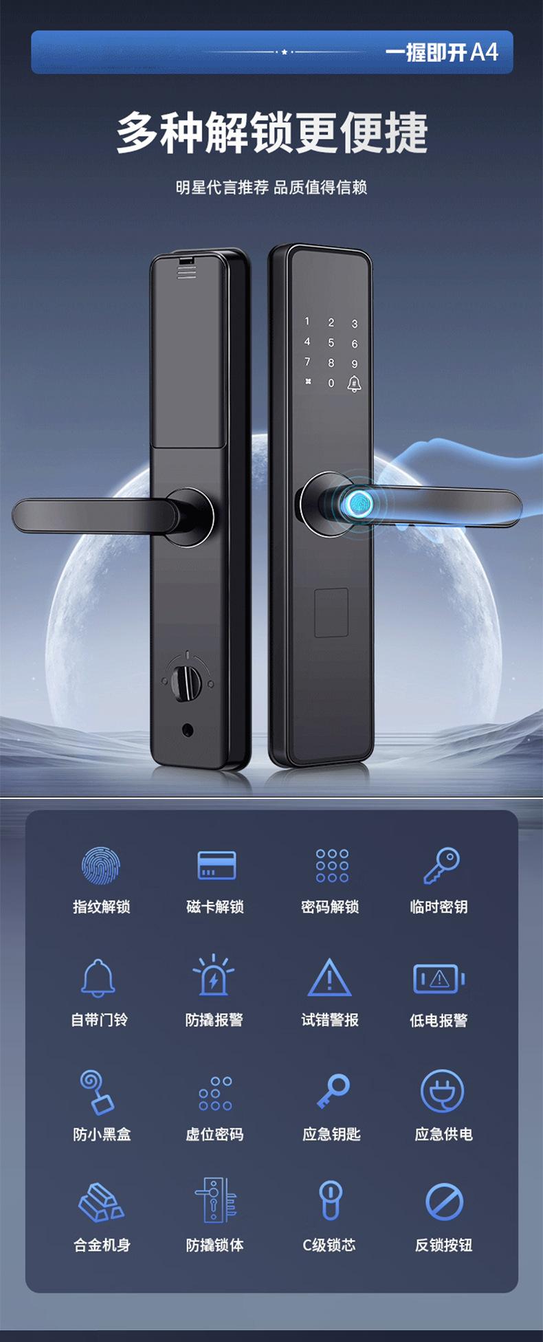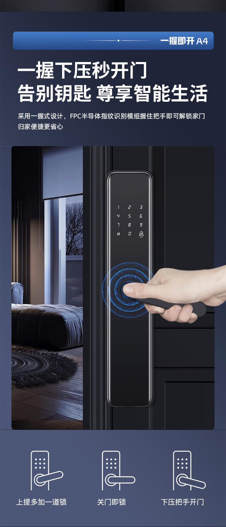 Cerradura de Huella Digital de un Toque Cerradura de Puerta Inteligente B&B Apartamento Cerradura de Contraseña Puerta de Entrada Cerradura Inteligente Seguridad para el Hogar Puerta