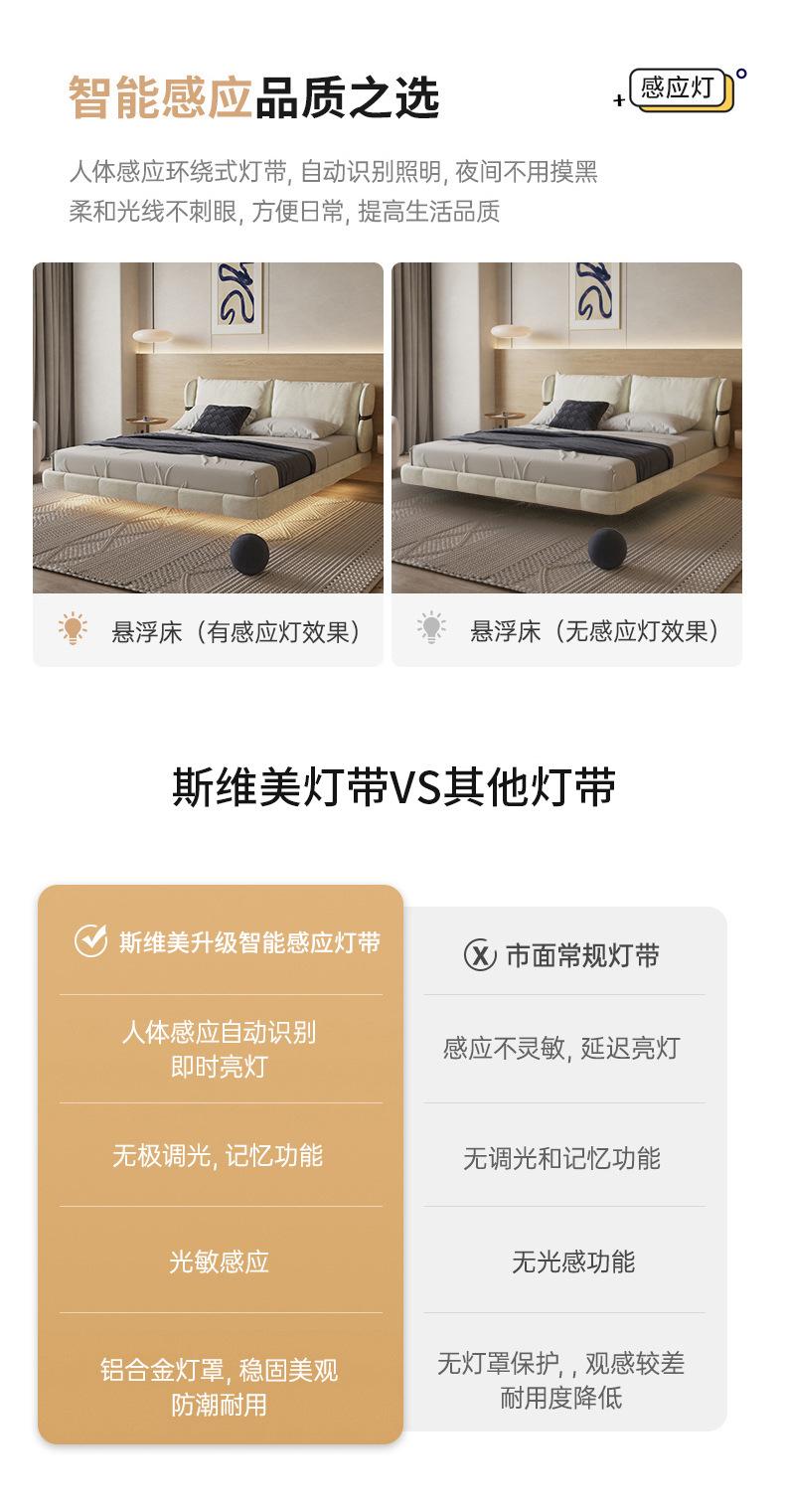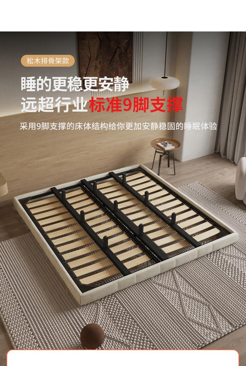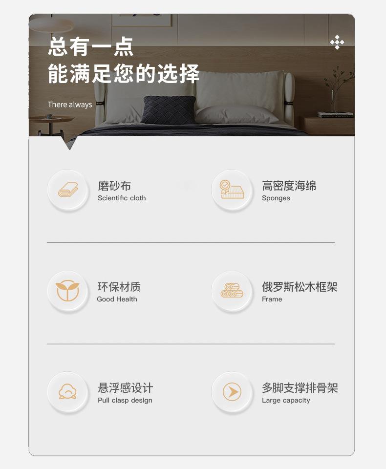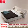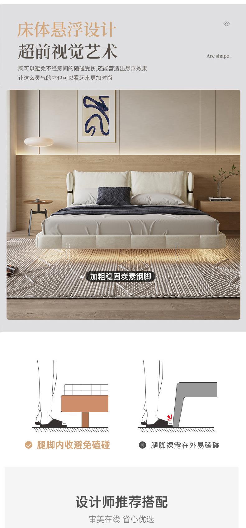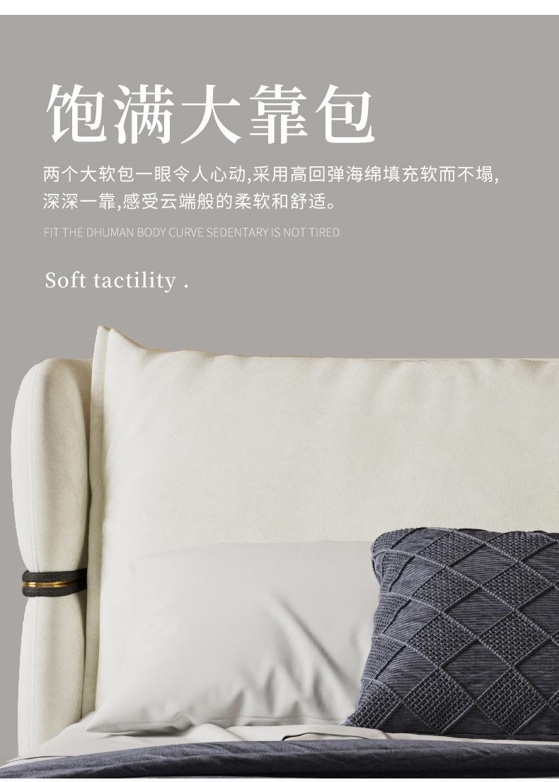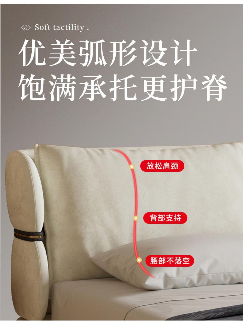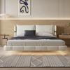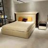 Cama colgante minimalista de estilo italiano con respaldo suave y tela de lujo ligera de madera maciza de estilo crema, cama doble minimalista moderna para dormitorio principal.