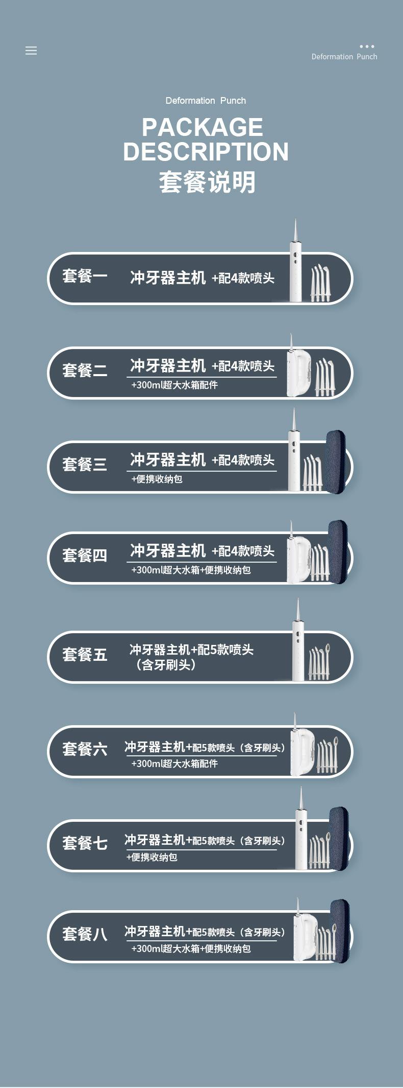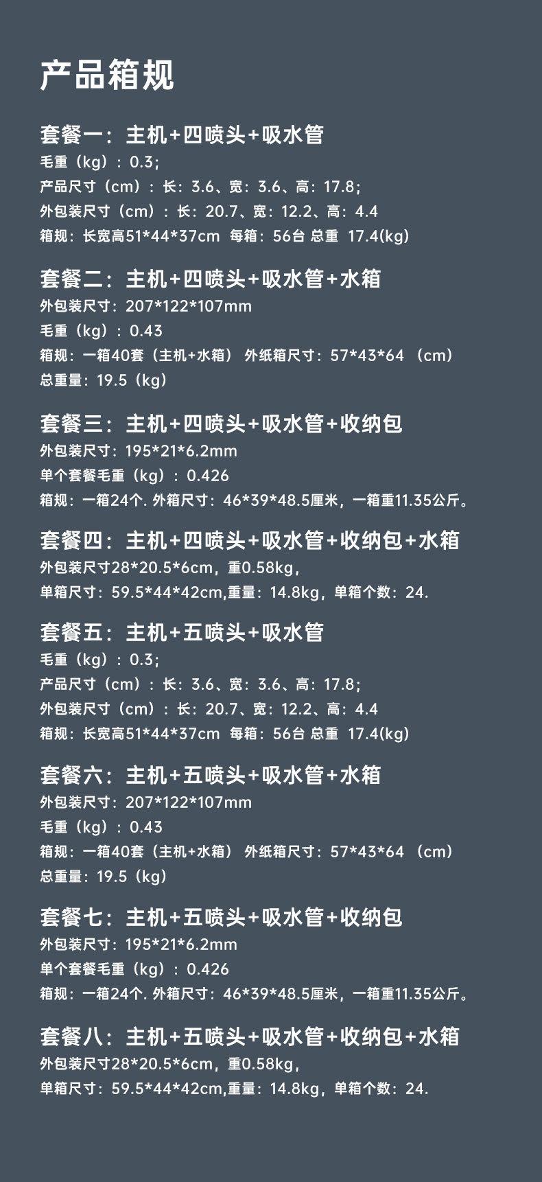Chinese packaging package eight hosts with 5 nozzle + 300ml water tank + storage bag