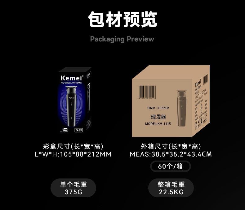 Cortadora de cabello Kemei KM-1115, cortadora de cabello eléctrica profesional con cabezal de aceite, artefacto de afeitado especial para peluquería, cortadora eléctrica.