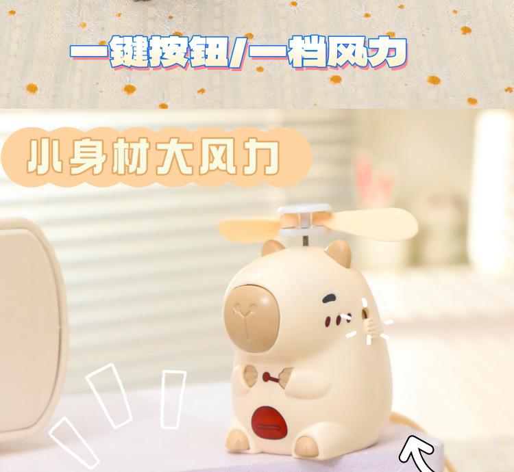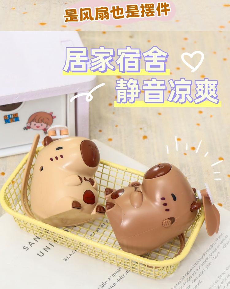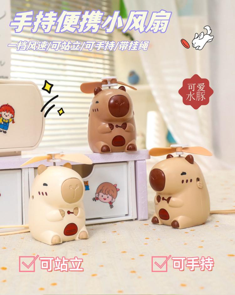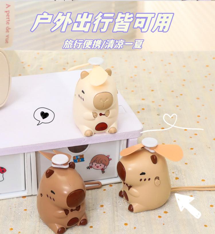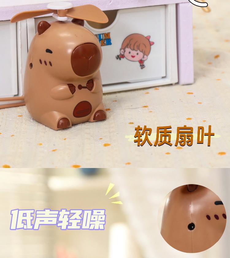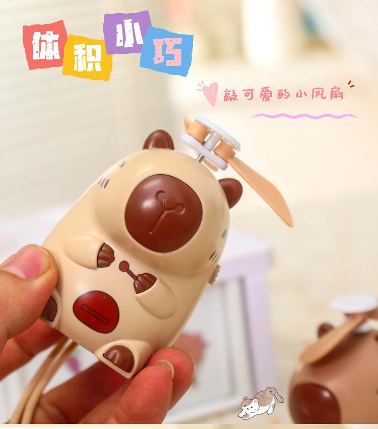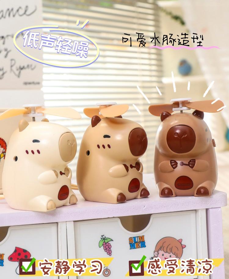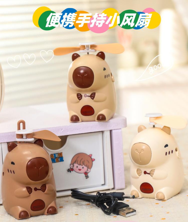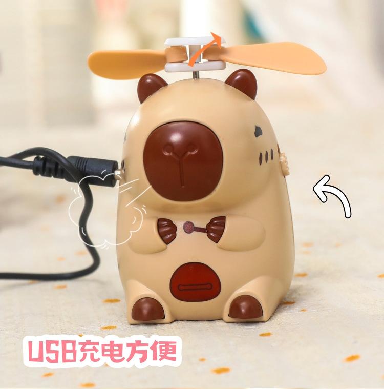 Lindo capibara mini ventilador pequeño recargable de mano para niños divertido de escritorio base soporte usb ventilador eléctrico al por mayor