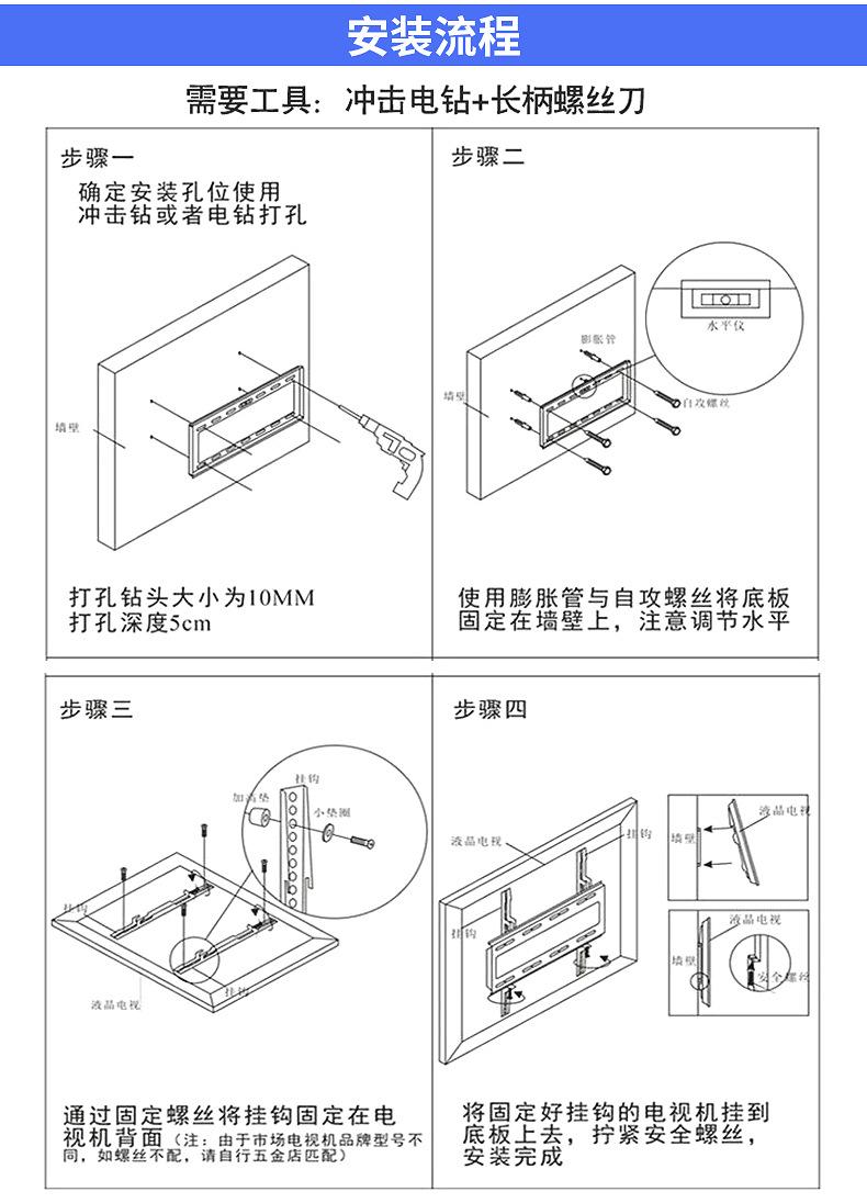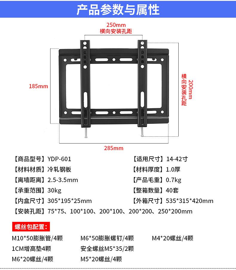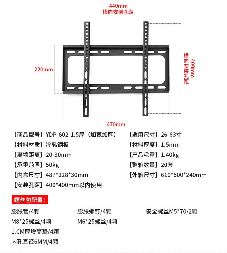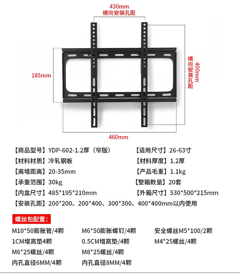 Small integrated hanger (1.0 thick) 14-42inch, Screw type (wide plate 1.2 thick) 26-65inch, Screw type (wide p...