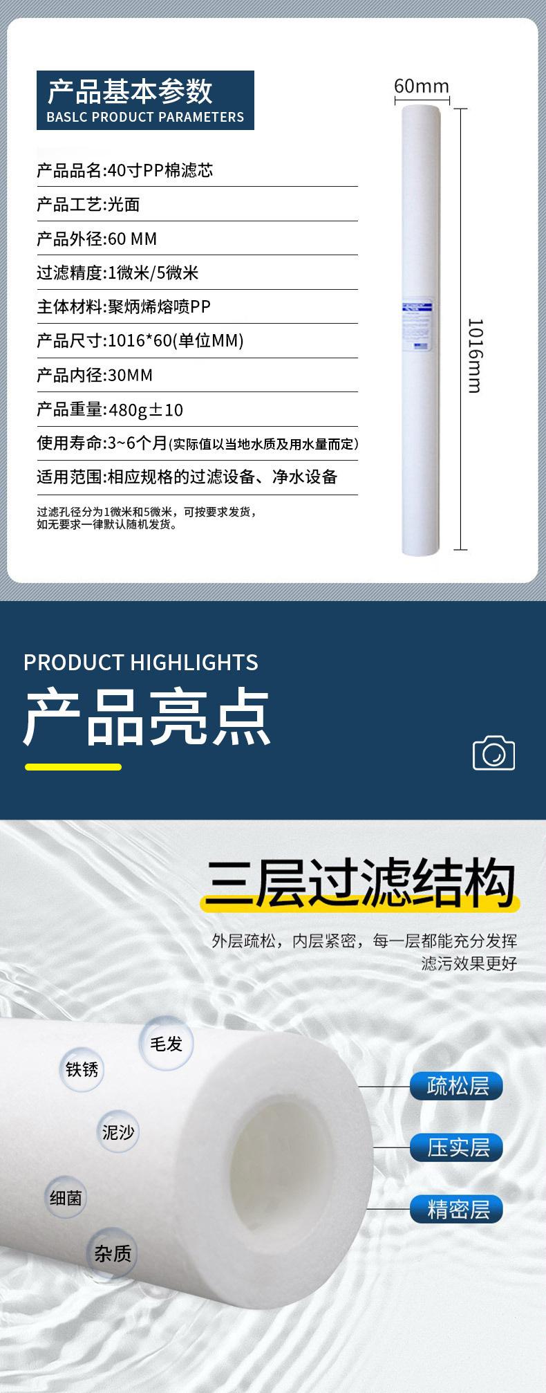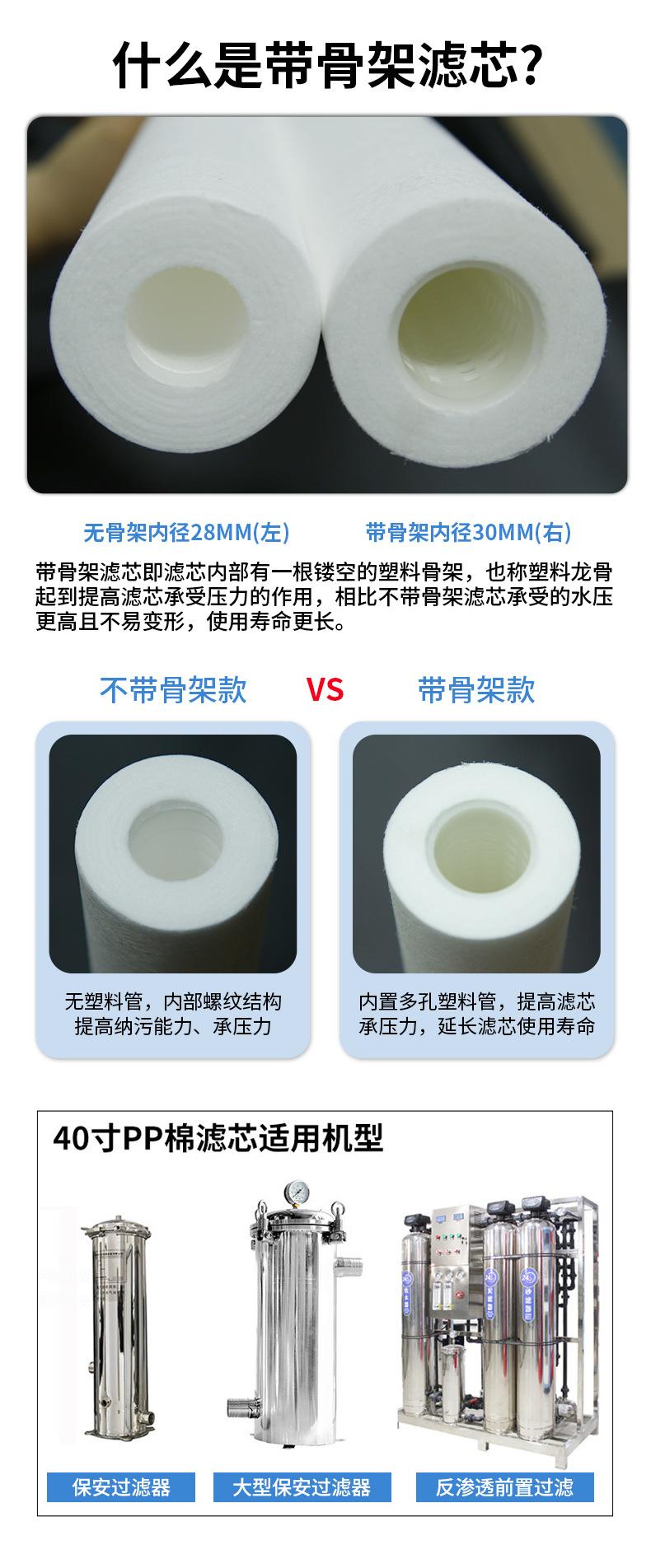 Elemento Filtrante de Esqueleto de 40 pulgadas de Algodón PP Polipropileno Soplado por Fusión Maquinaria de Ingeniería Industrial Precisión Accesorios para Purificador de Agua Comercial