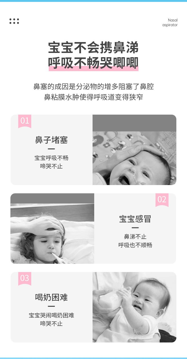 Características del producto: La succión se controla automáticamente para resolver rápidamente los problemas de congestión nasal.
