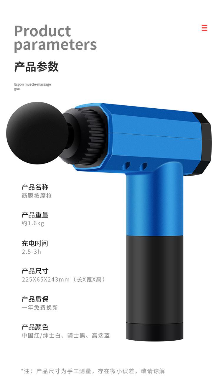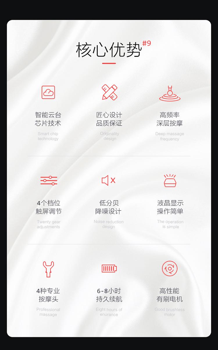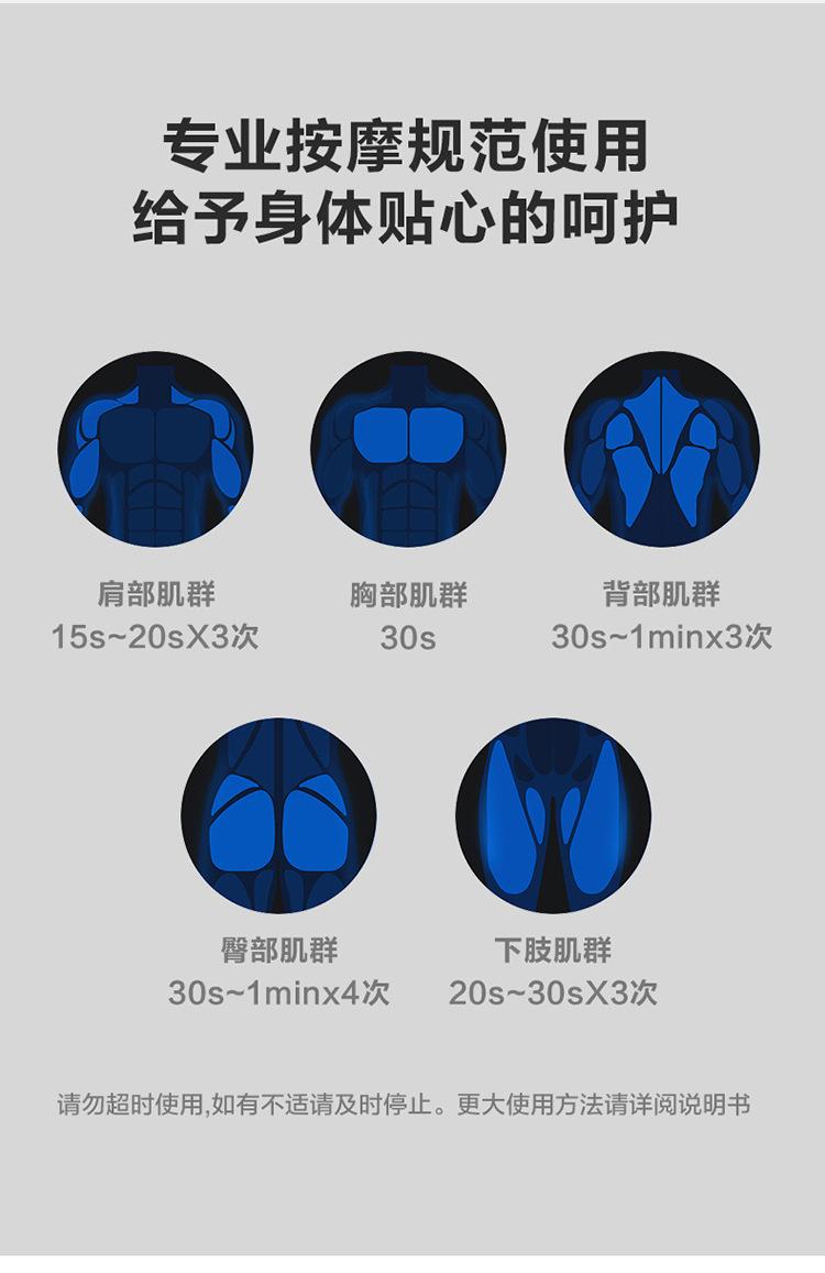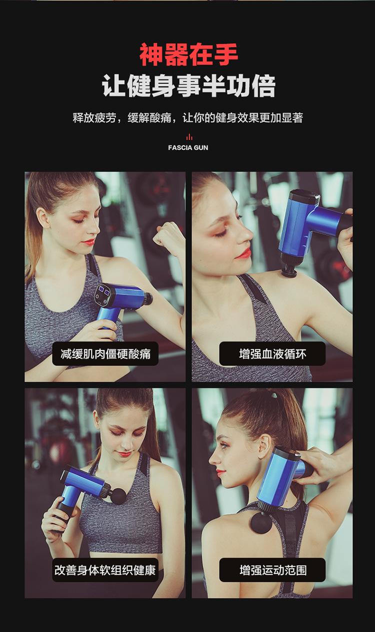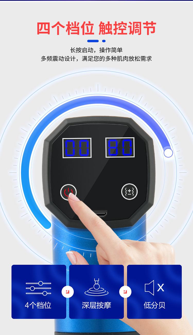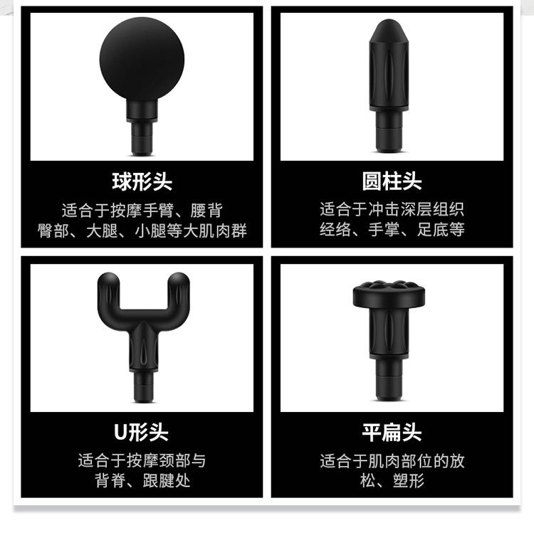 Masaje profundo de alta frecuencia de seis velocidades, cuatro cabezales de masaje reemplazables.