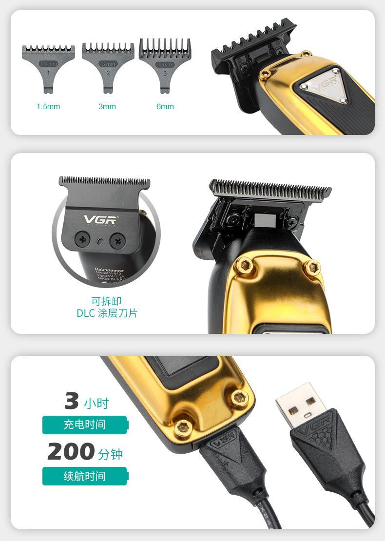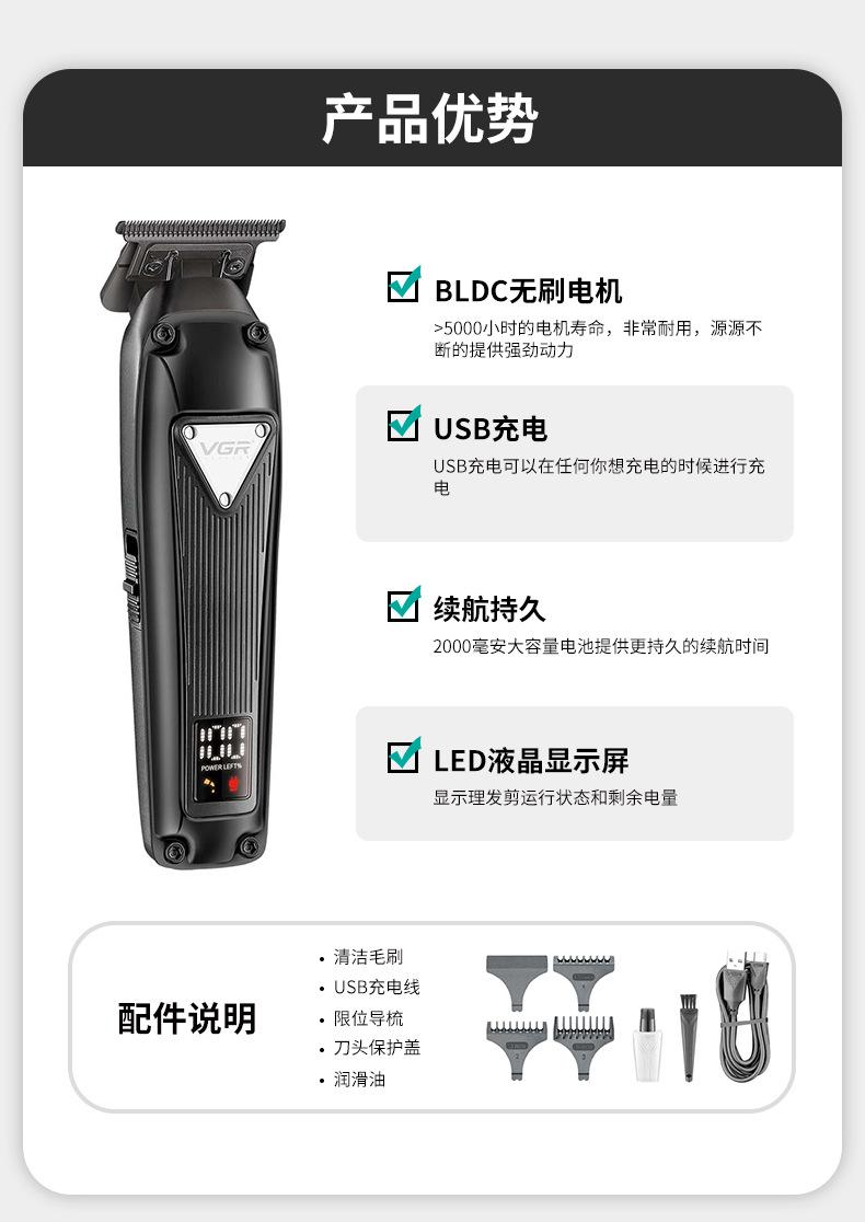 Cortadora de pelo eléctrica transfronteriza VGR913 para hombres, de alta potencia, con cabezal de aceite retro, pantalla digital, cabezal de afeitado, cortadora de pelo eléctrica de empuje
