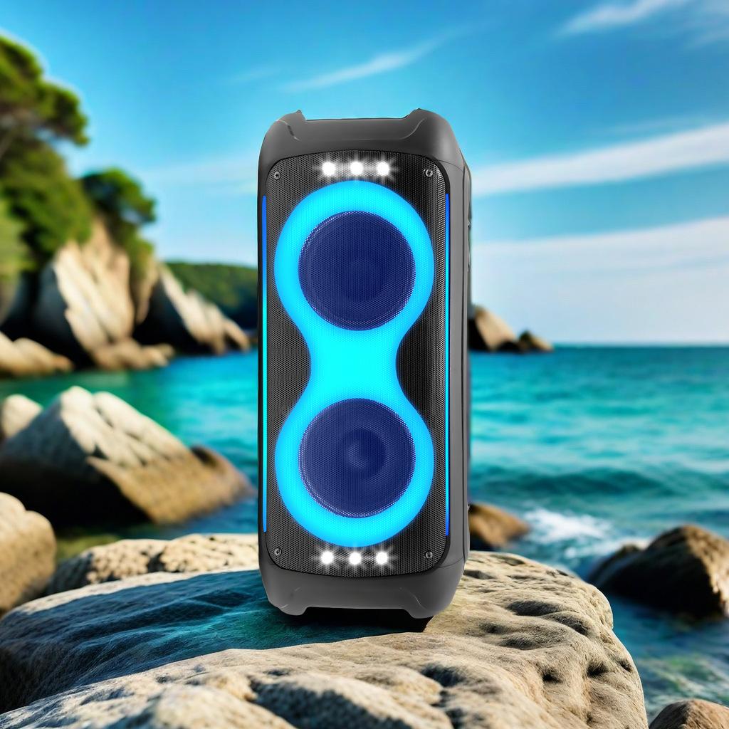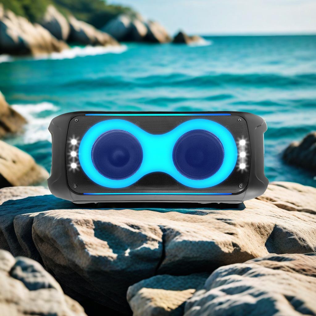 Altavoz estéreo con Bluetooth, audio RGB, iluminación colorida, subwoofer cuadrado portátil para exteriores y hogar.