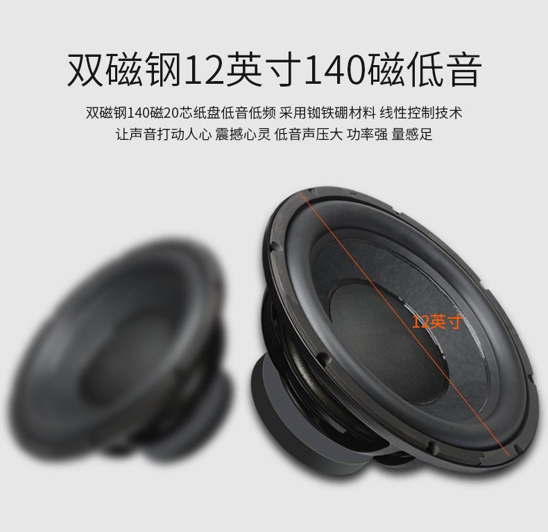 Front 10 inches, center double 6.5 inches, surround 6.5 inches, Bass 12 inches