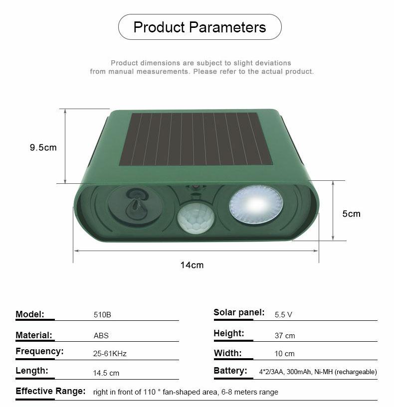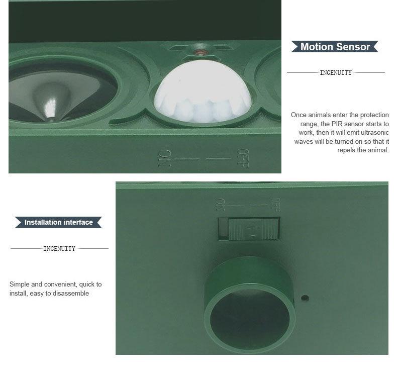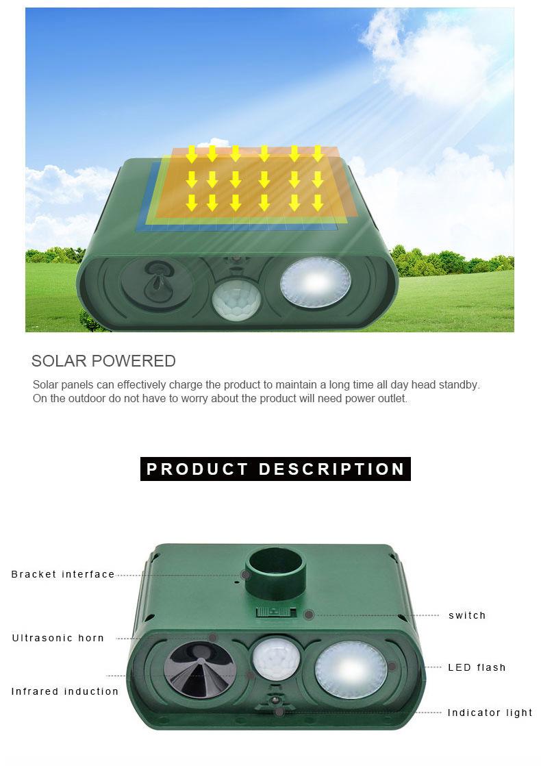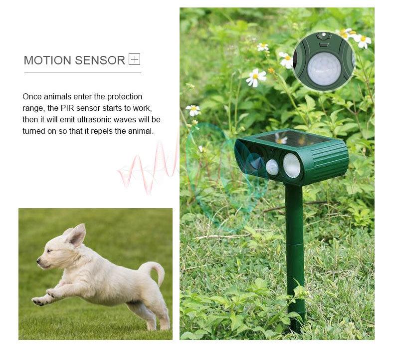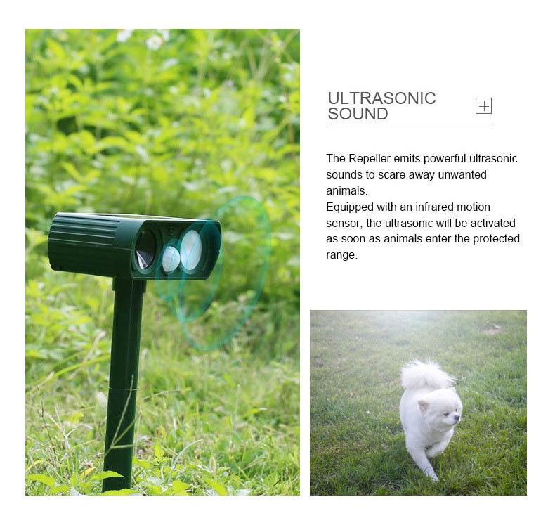 Repelente ultrasónico de animales con ráfaga de luz infrarroja solar