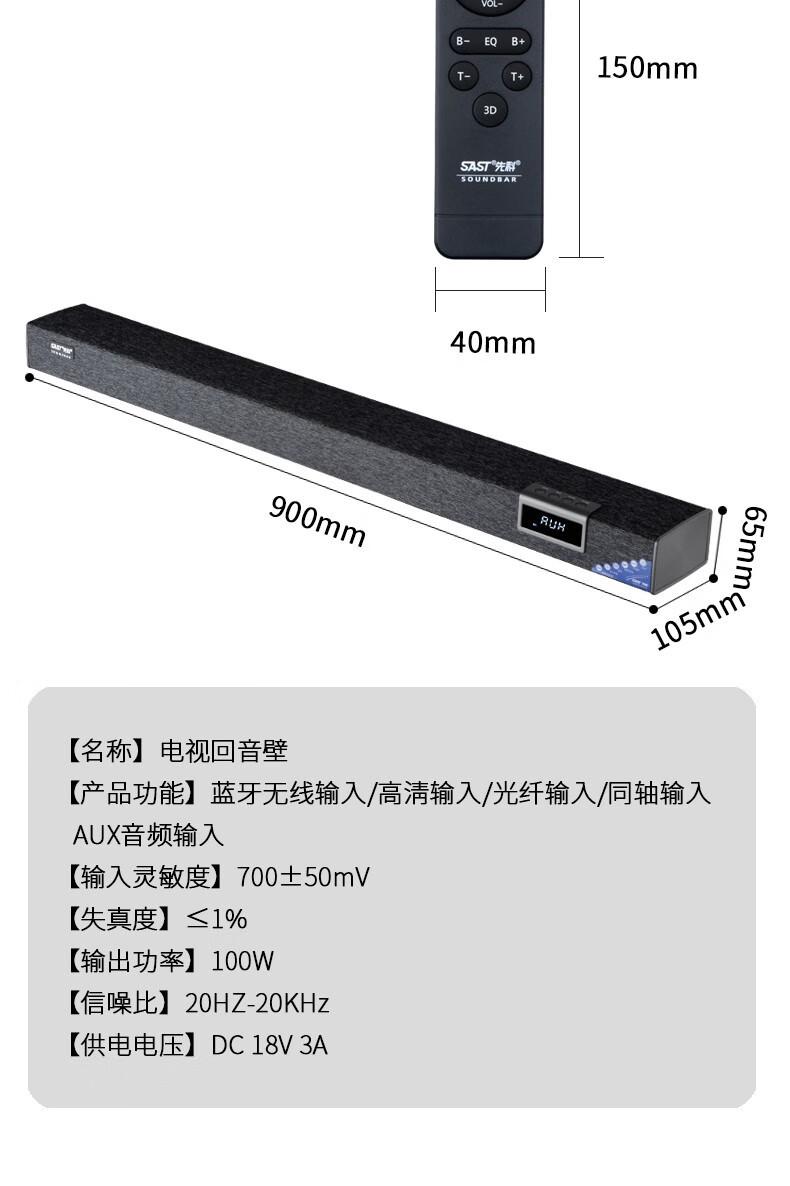 SAST Home Theater TV audio Echo Wall Bar Inalámbrico Bluetooth para colgar en la pared graves de alta potencia