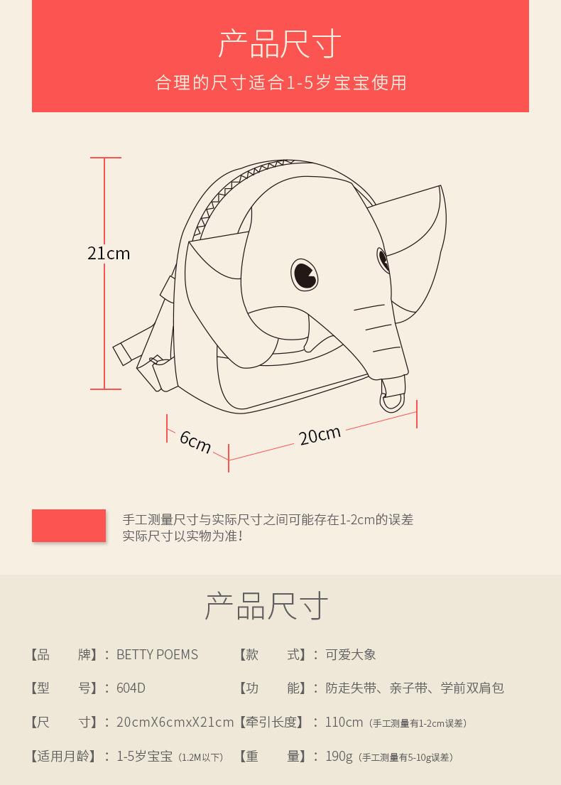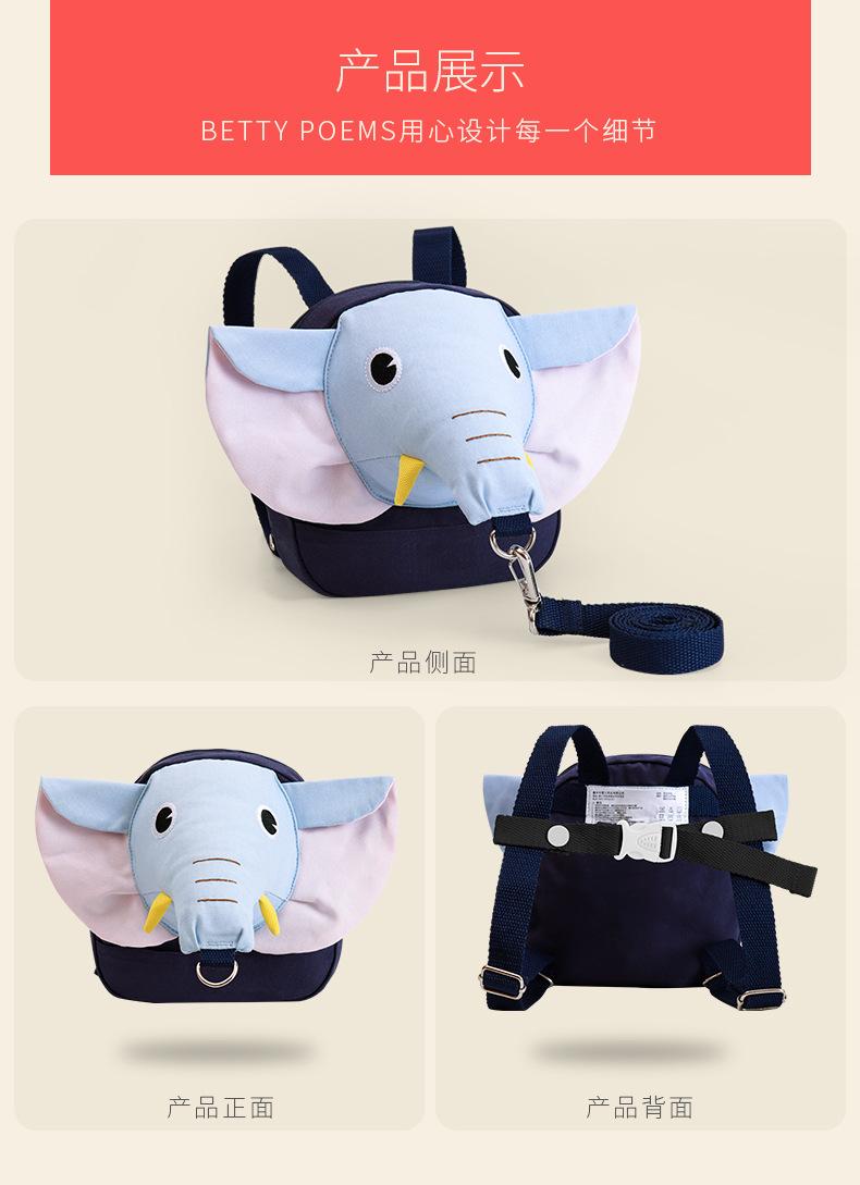 Este producto es una mochila anti-pérdida para bebés y niños pequeños, una bolsa de tracción y una mochila pequeña para niños. Es un nuevo estilo de este año. Presenta un lindo elefante con una trompa completamente rellena de algodón. El material es de alta calidad y viene con una cuerda de tracción de 90 cm de largo. Actualmente hay dos colores para elegir. El stock es suficiente y adecuado para plataformas nacionales como Tmall y Pinduoduo, así como para plataformas transfronterizas como Amazon y AliExpress.