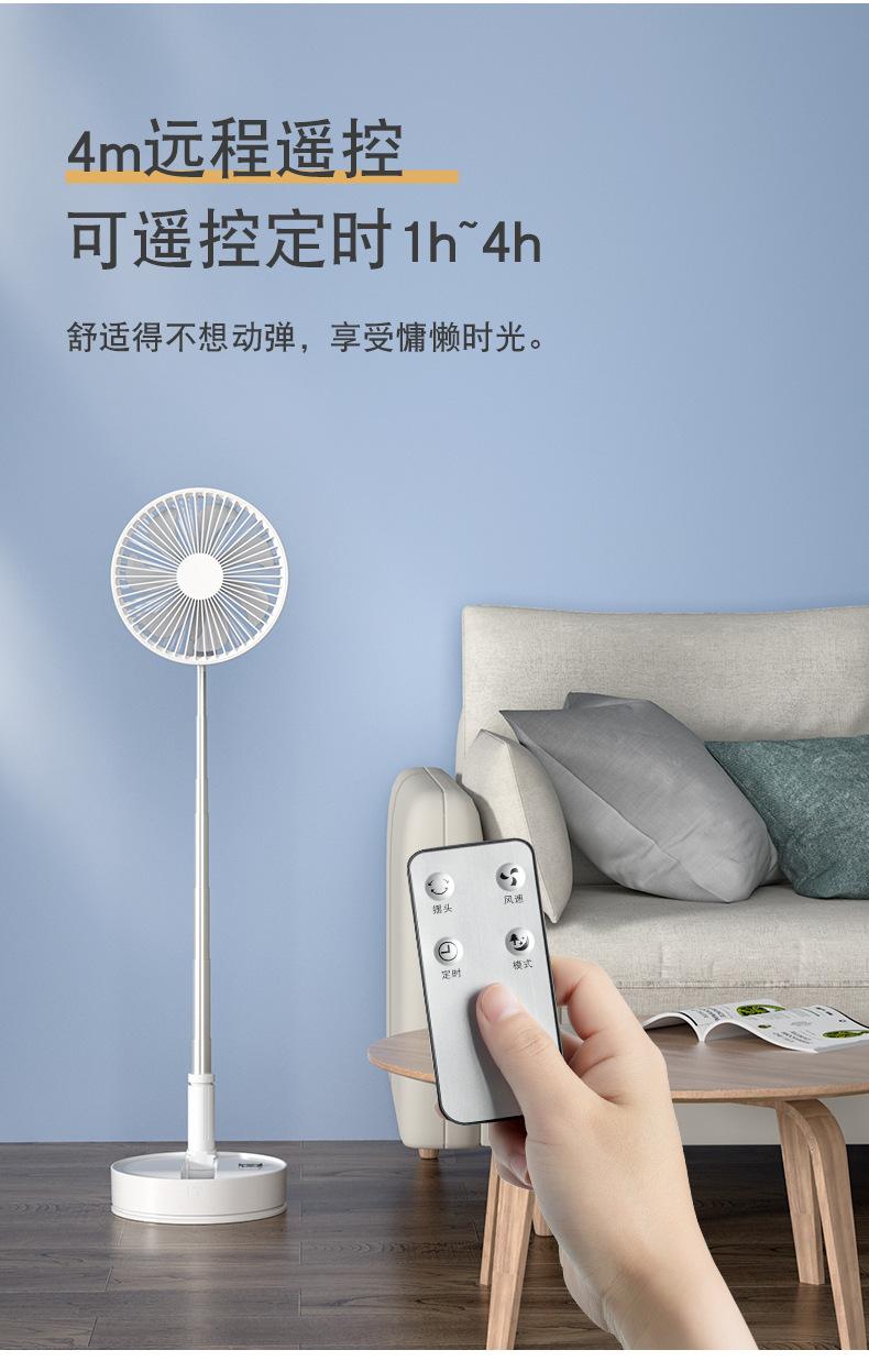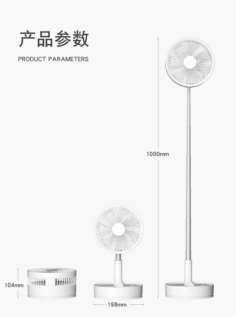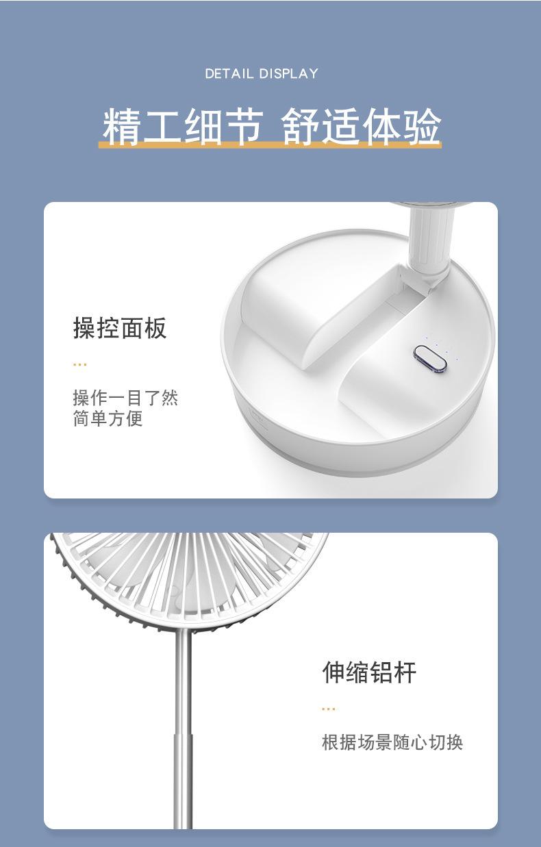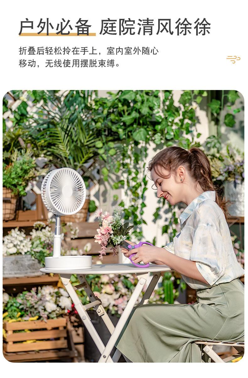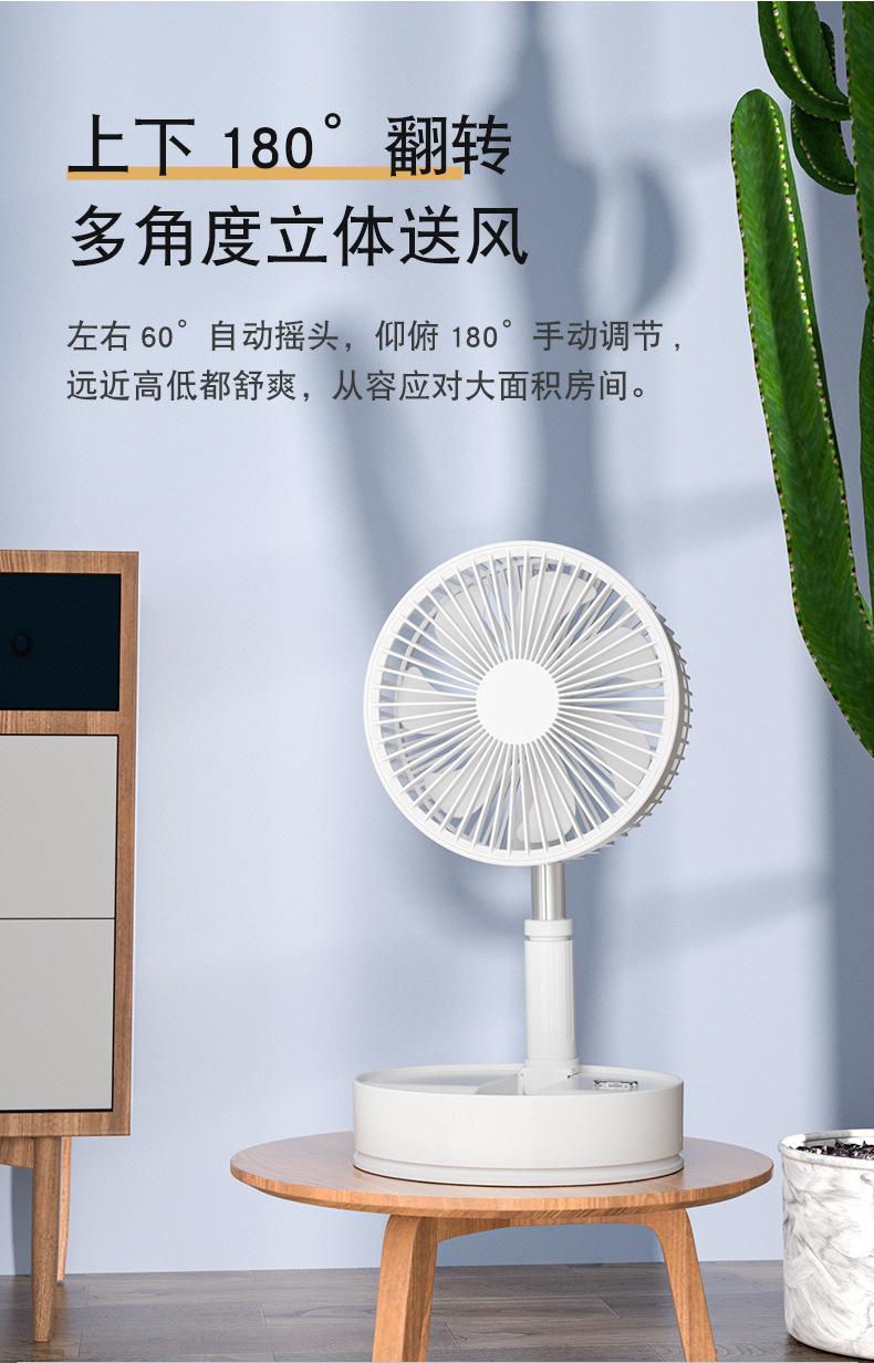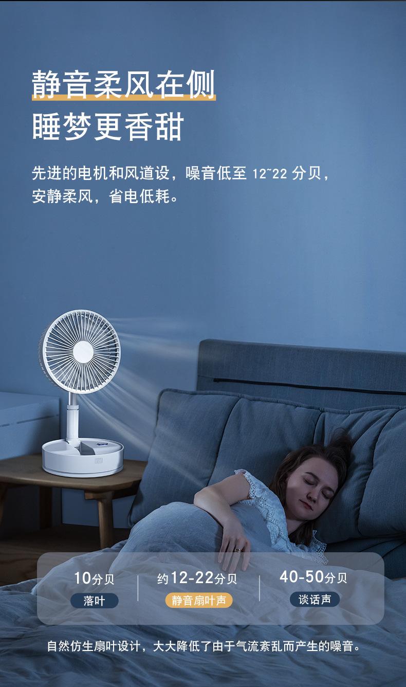 Ventilador de piso plegable retráctil P11, para escritorio, con cabezal móvil, silencioso, carga USB, para uso en el hogar, para acampar al aire libre y portátil.