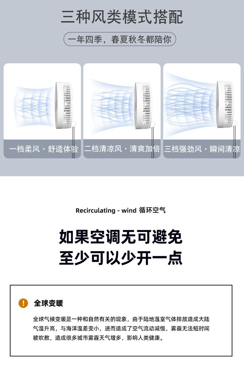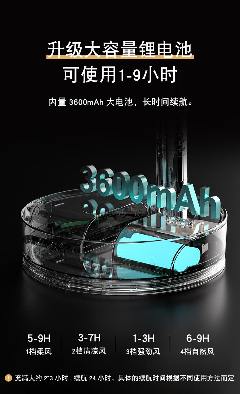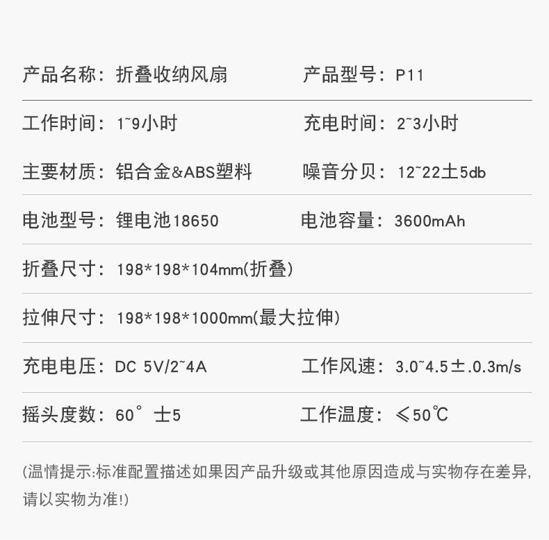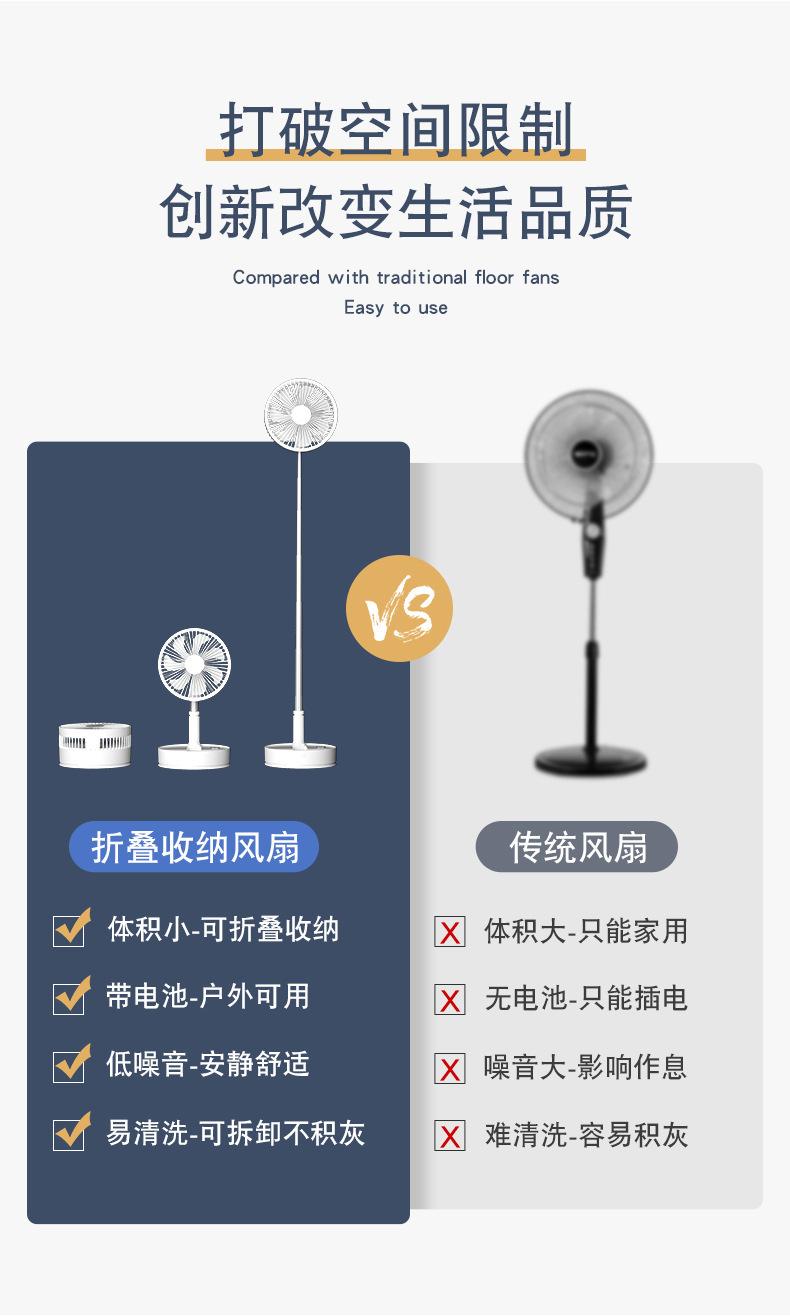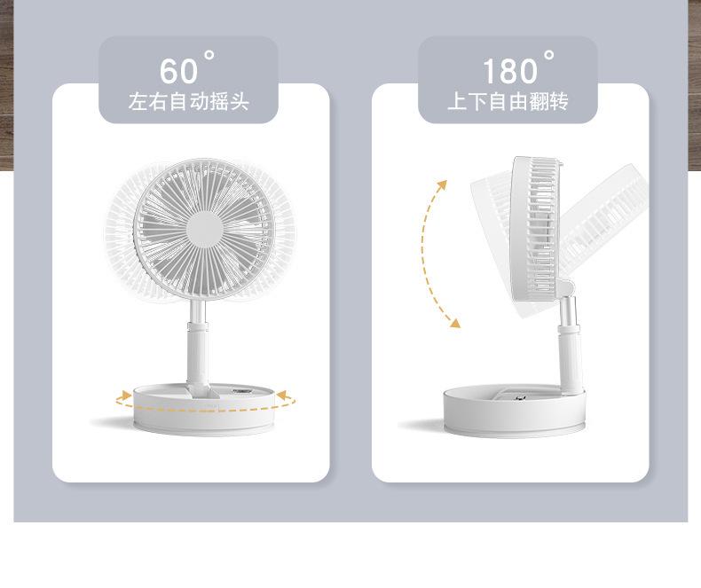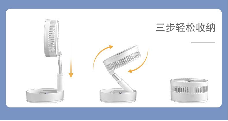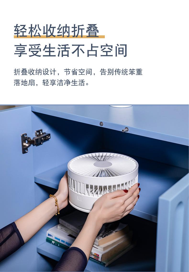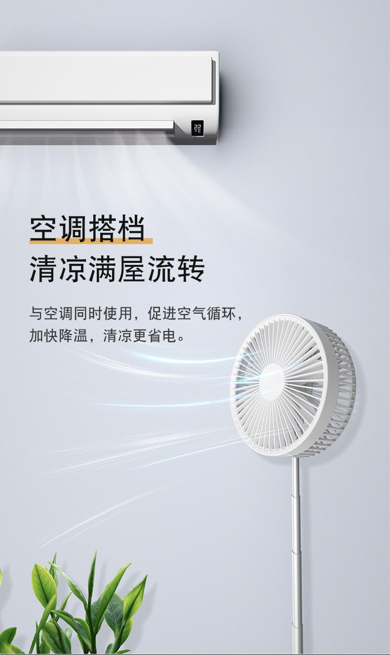 Ventilador de piso plegable retráctil P11, para escritorio, con cabezal móvil, silencioso, carga USB, para uso en el hogar, para acampar al aire libre y portátil.