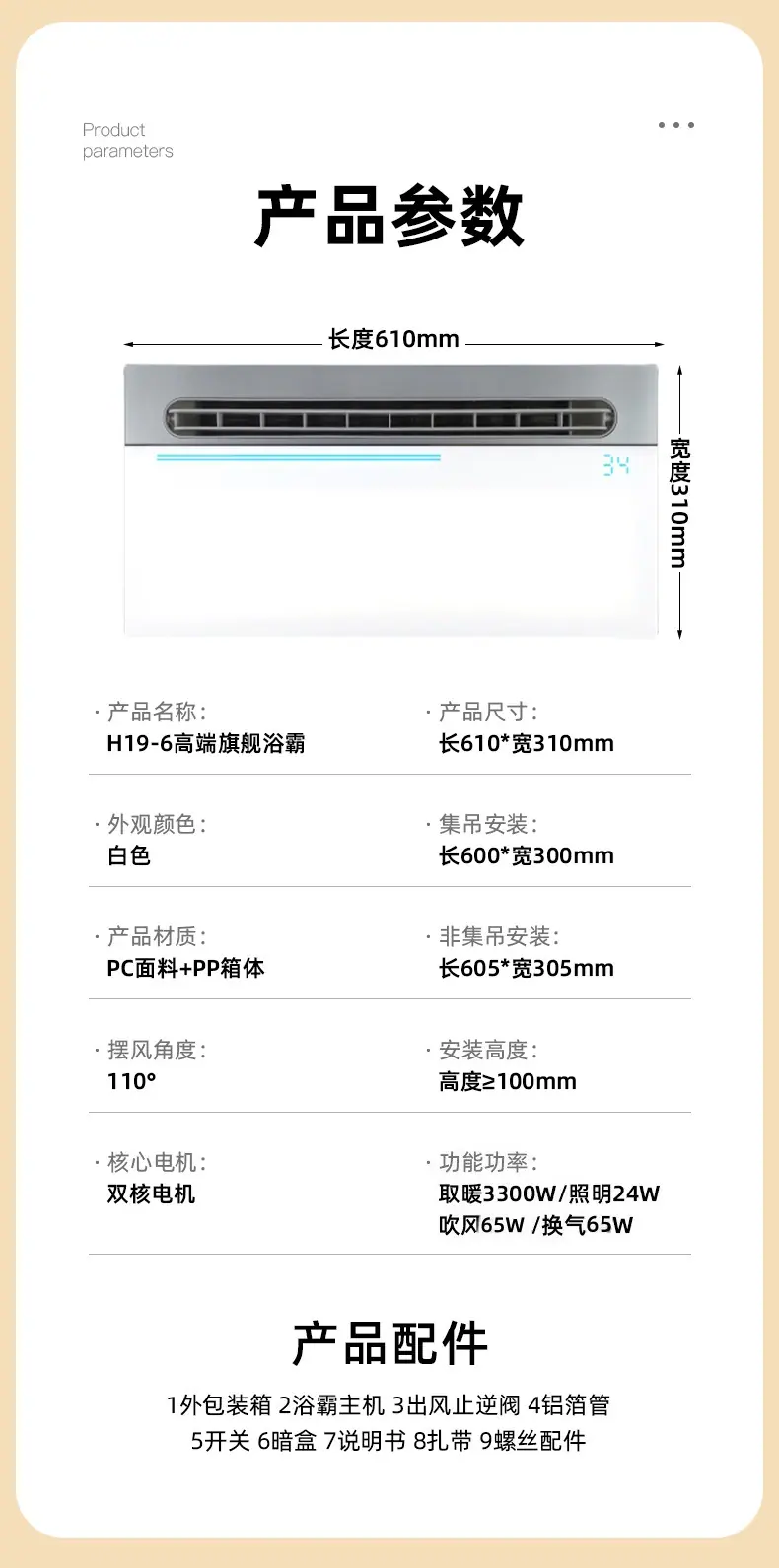Máquina Integrada Calentador y Ventilador Inalámbrico Inteligente para Baño con Alta Eficiencia de Calentamiento para Extractor y Calefacción de Techo