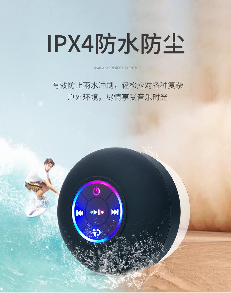 Celebrante de Internet Ventosa de Baño Impermeable Bluetooth Audio Portátil Hogar Exterior LED Colorido Luminoso Altavoz Pequeño