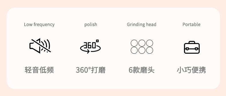 Tiempo de carga: 2-3 horas Configuración del producto: máquina + cable de carga + 5 cabezales de pulido
