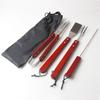 Acero inoxidable BBQ mango de madera juego de cuatro piezas herramienta para barbacoa tenedor pala bolsa de tela traje para barbacoa fábrica de origen