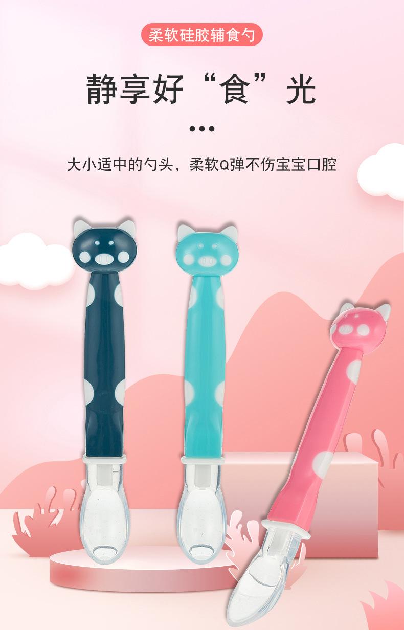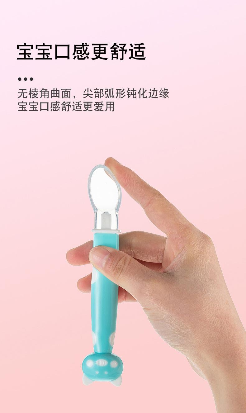 Cuchara de silicona con dibujos animados Dorado Baby, cuchara de entrenamiento para alimentos con cabezal suave, cuchara de silicona para bebés, cuchara de comida 6449