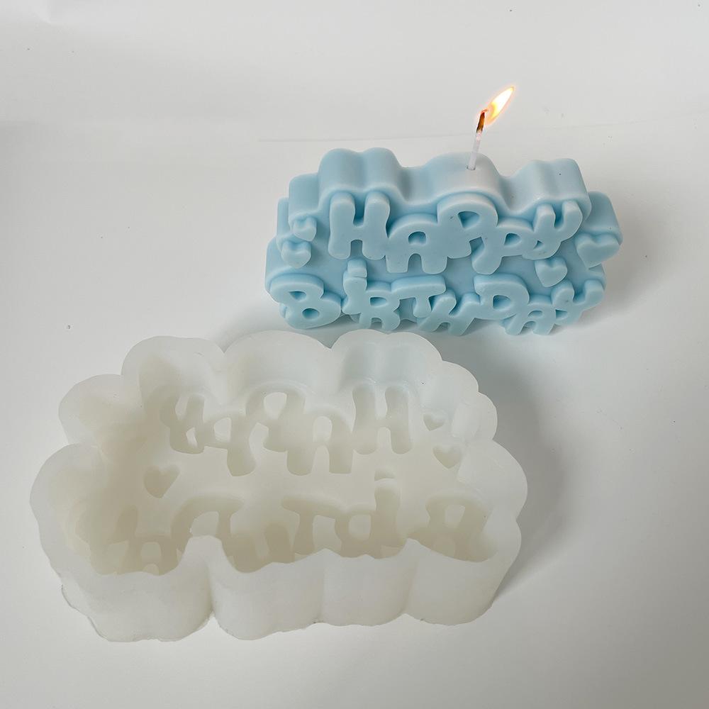 Molde para velas de aromaterapia de feliz cumpleaños, molde de silicona de yeso, decoración DIY, piedra de incienso, utensilios para hornear 8391