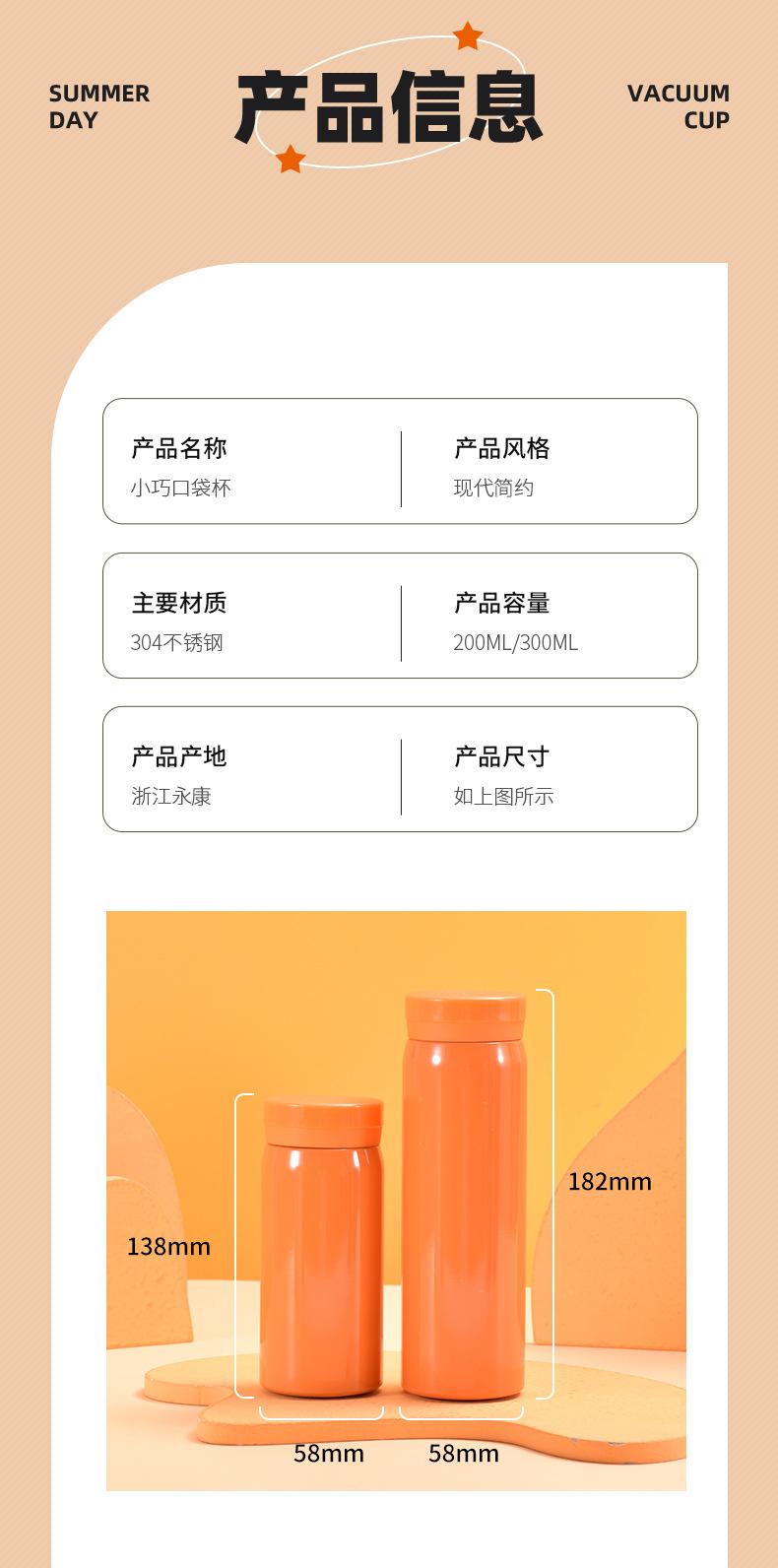 Mini termo de bolsillo de acero inoxidable 304, portátil, de alta calidad, con logotipo.