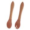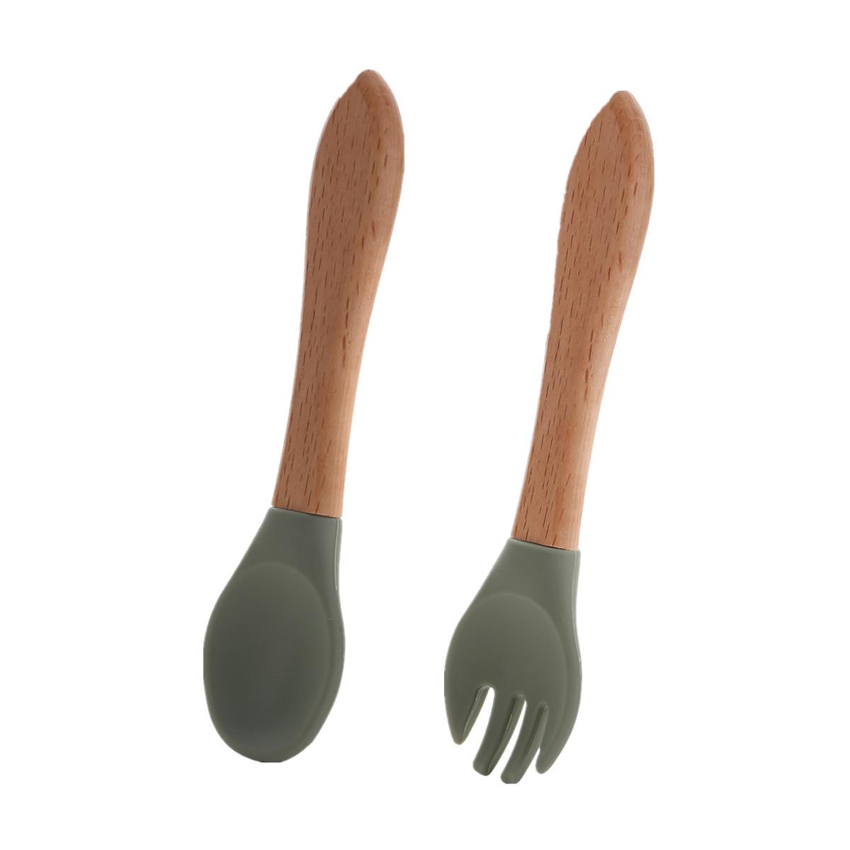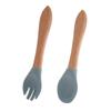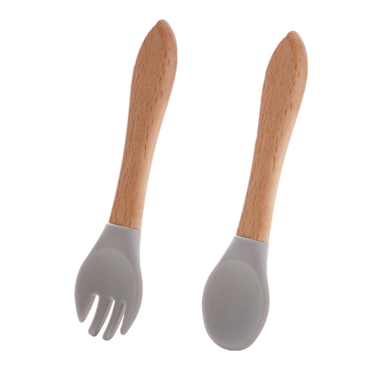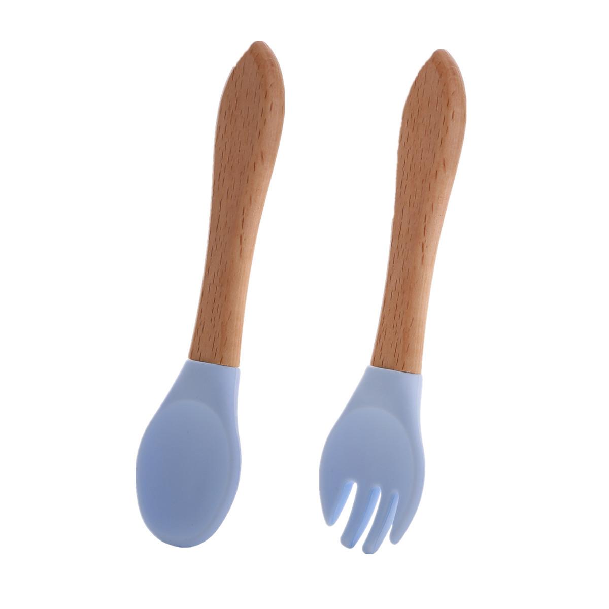 Cuchara de silicona con mango de madera para niños de grado alimenticio, tenedor, vajilla, cuchara de suplemento alimenticio para entrenamiento de bebés, cuchara de alimentación para bebés, tenedor