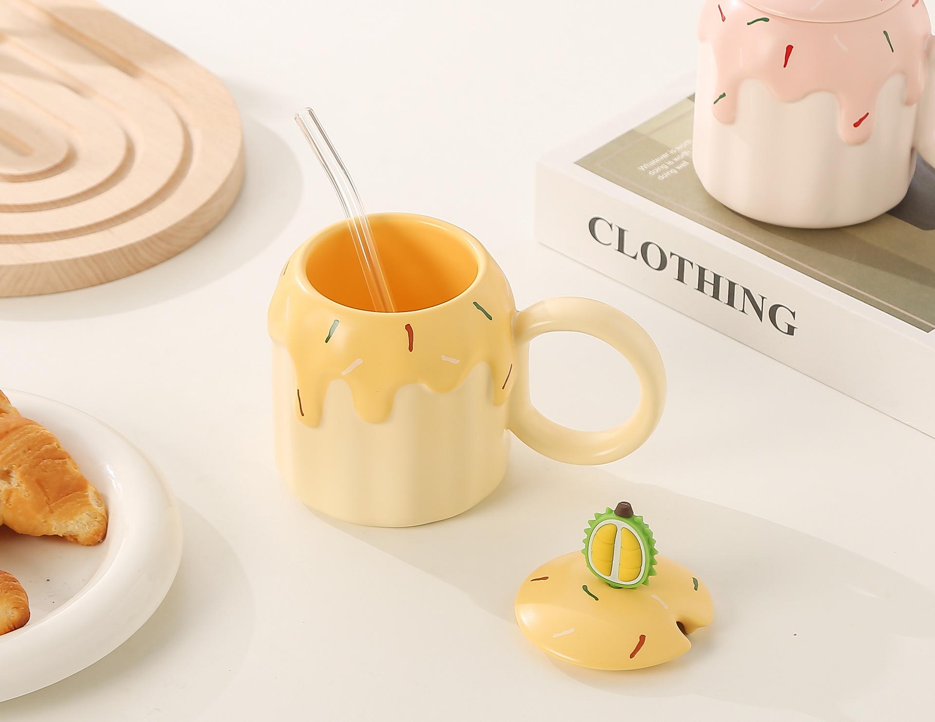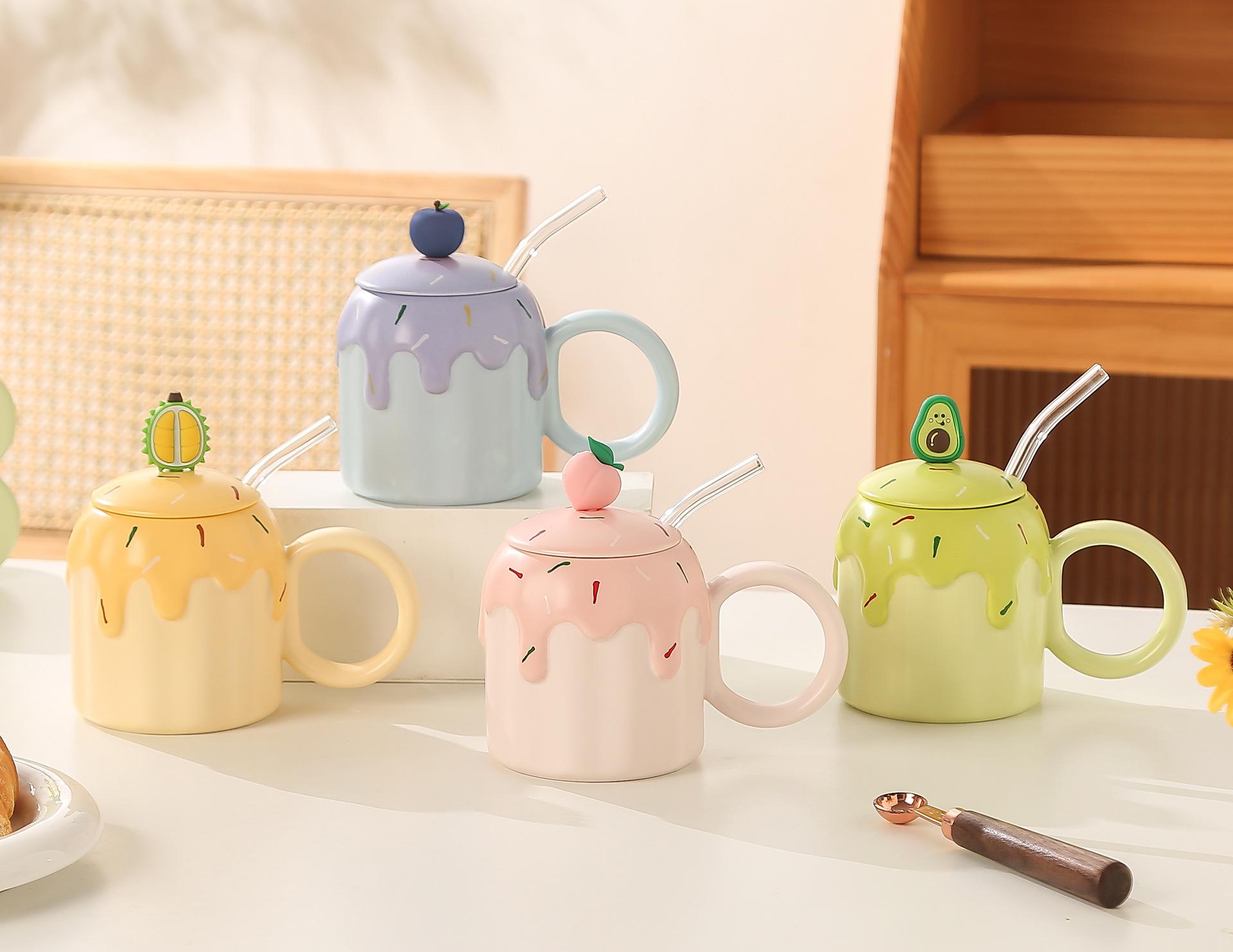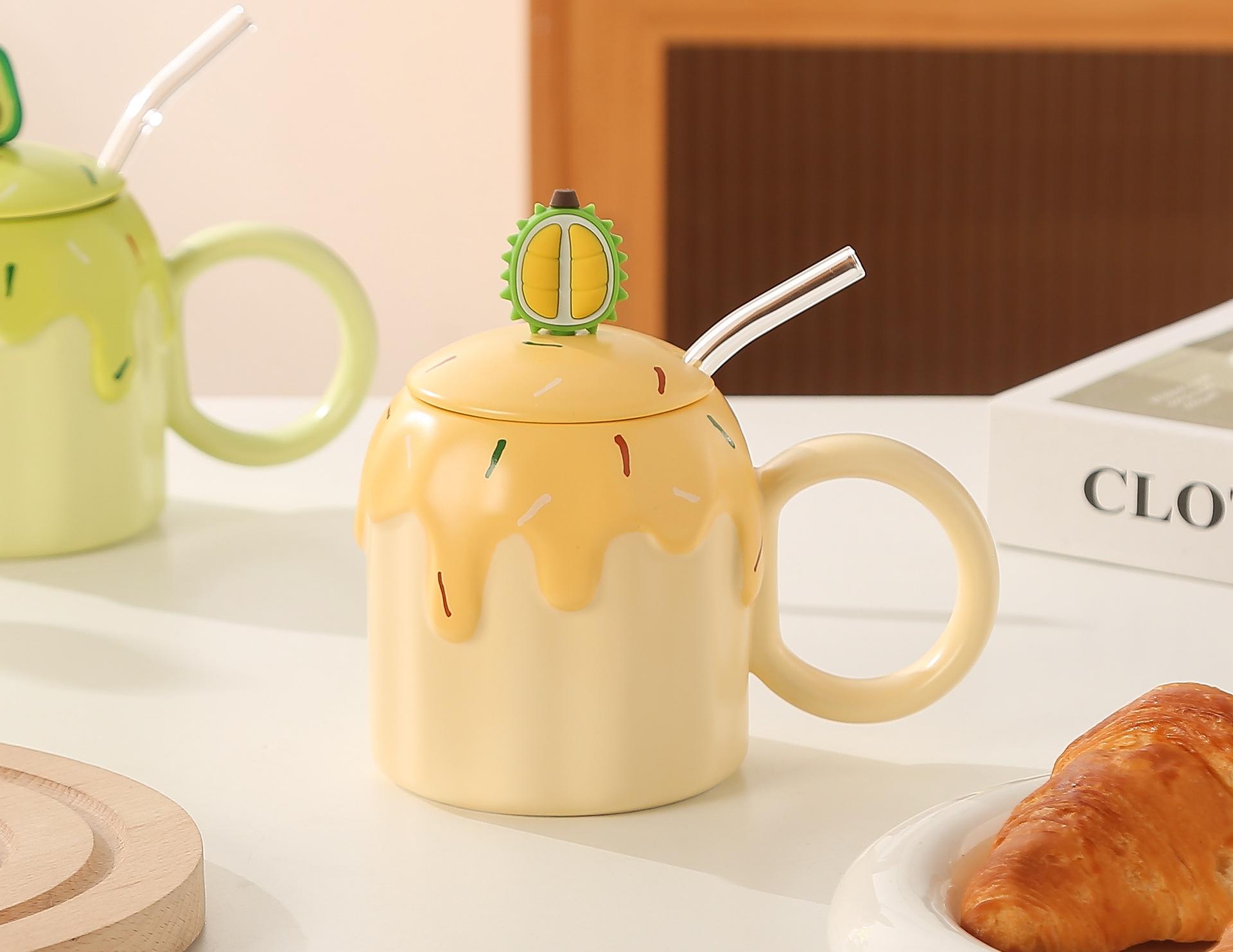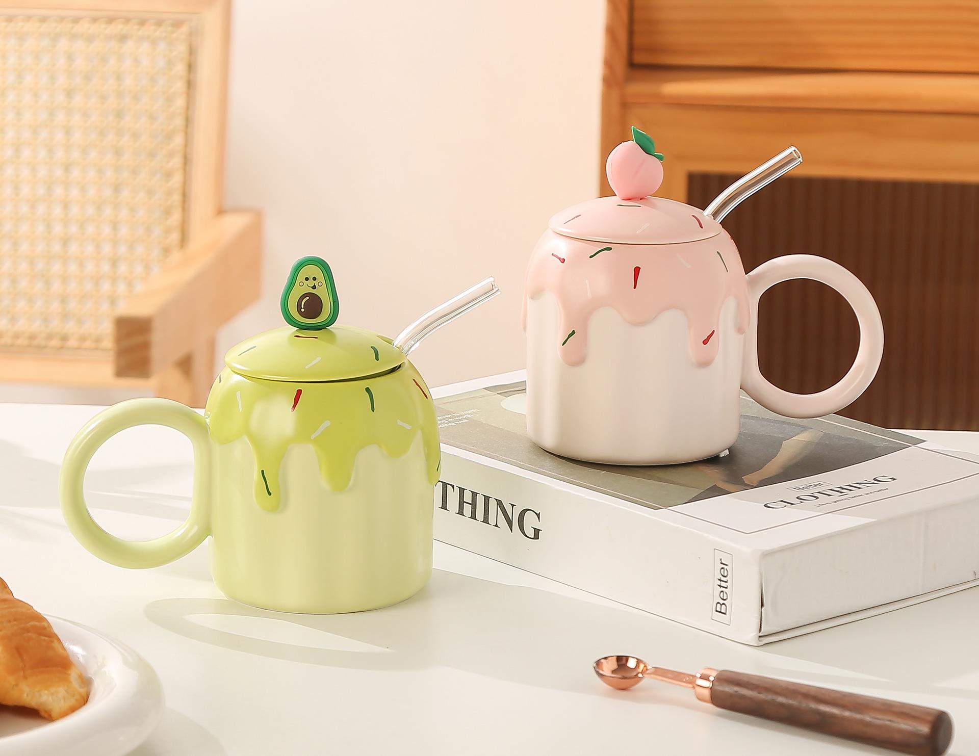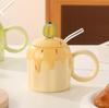 Taza de cerámica con forma de fruta fresca, con orejas grandes, color macarrón, creativa, para oficina, hogar, paja, taza de leche para desayuno