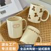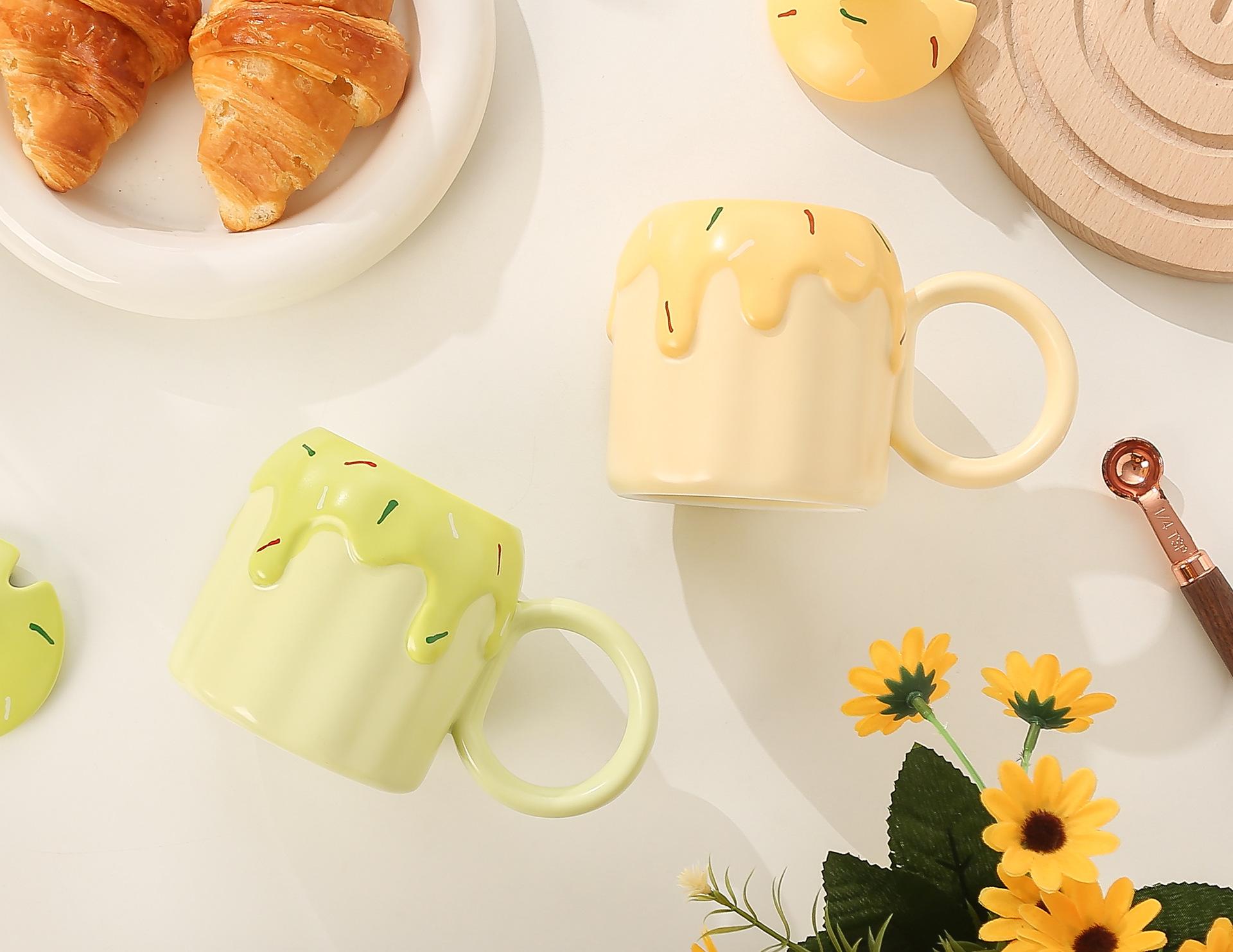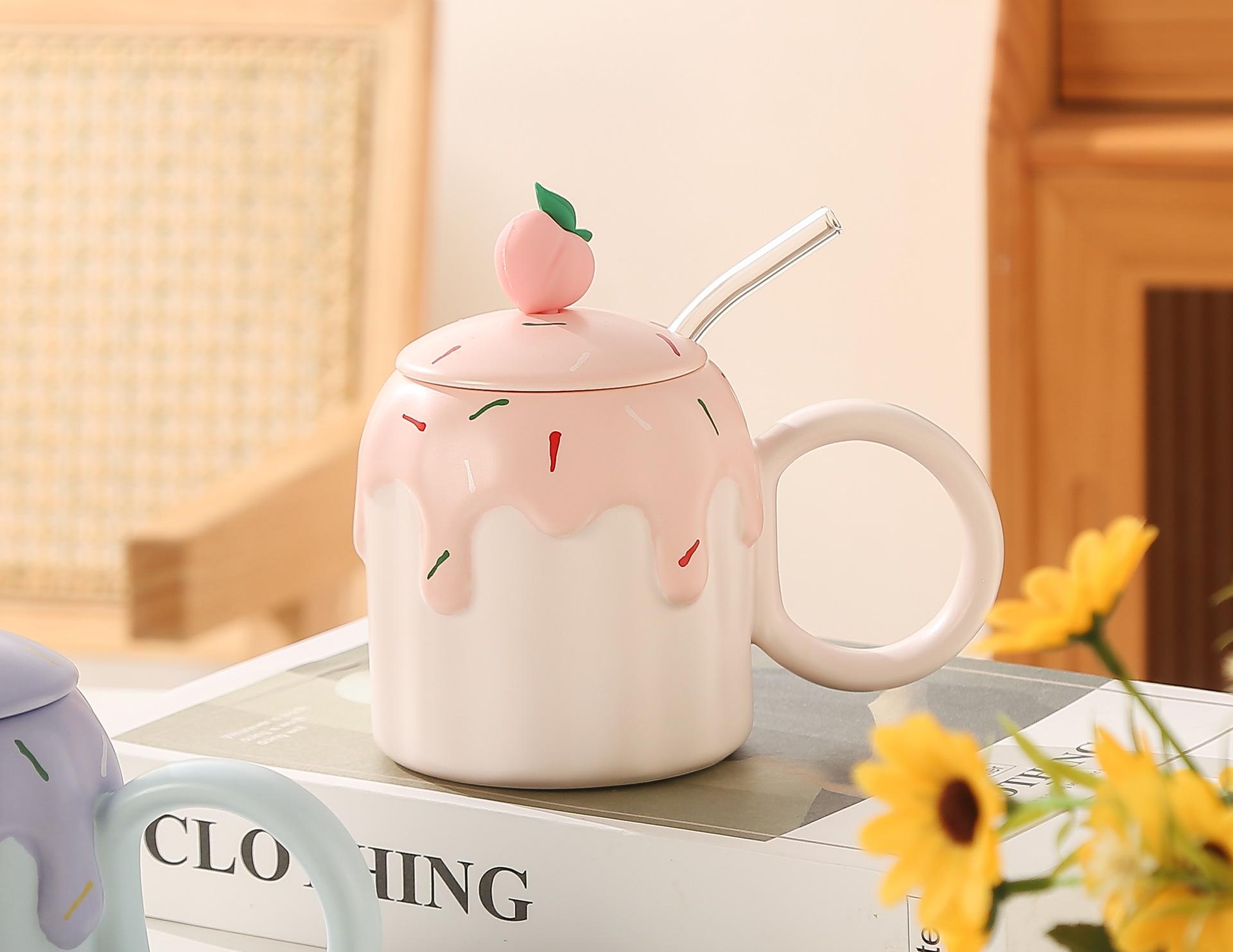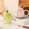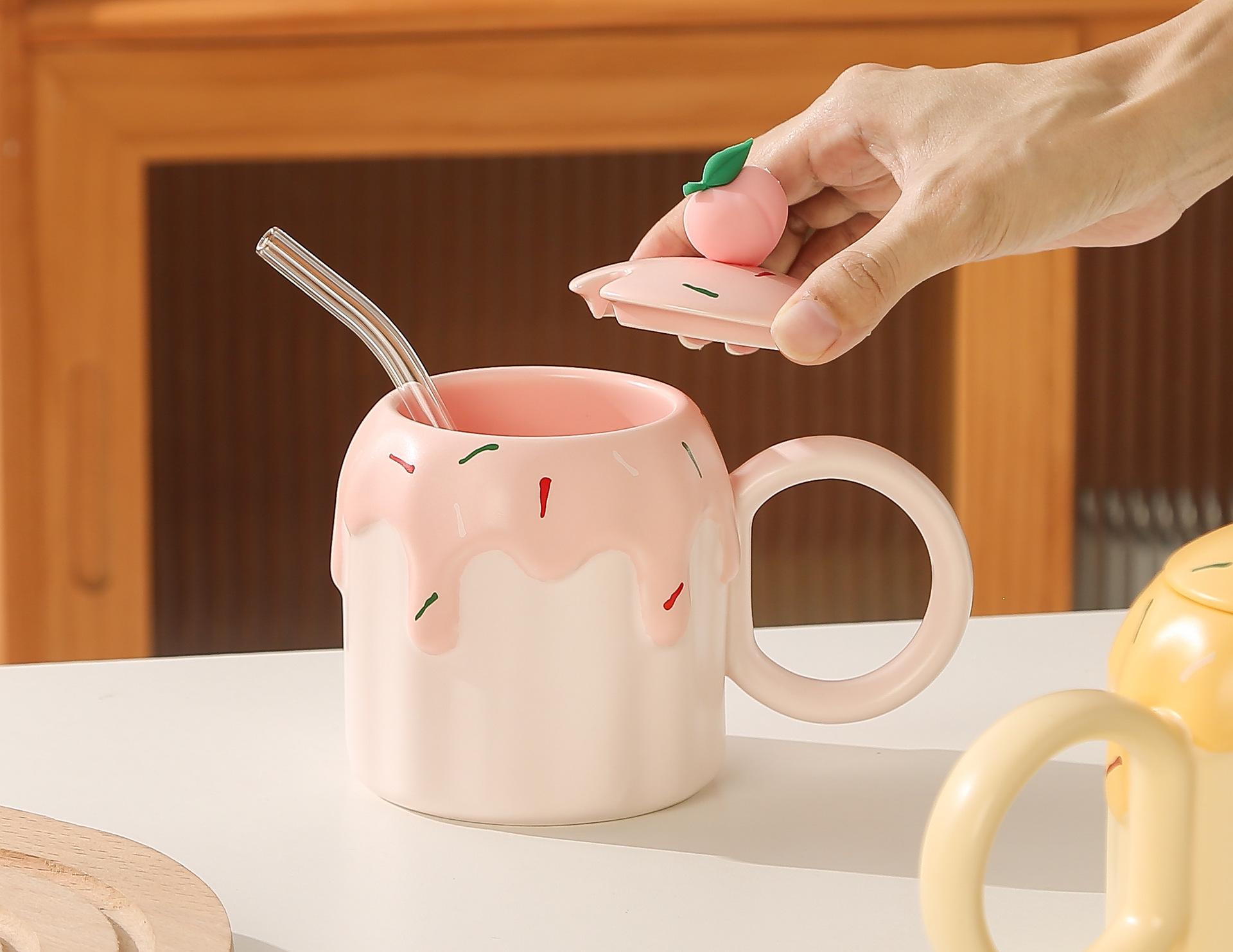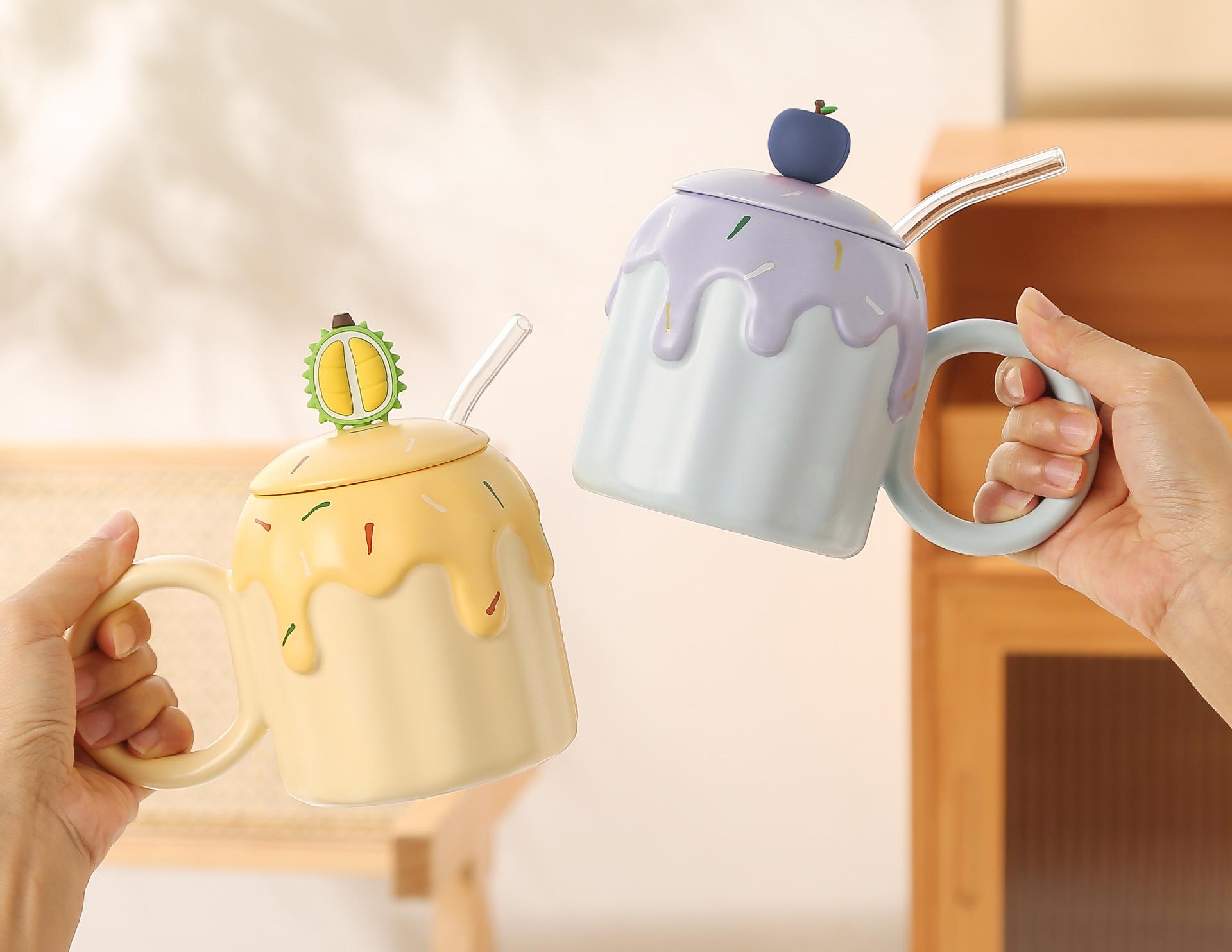 Taza de cerámica con forma de fruta fresca, con orejas grandes, color macarrón, creativa, para oficina, hogar, paja, taza de leche para desayuno