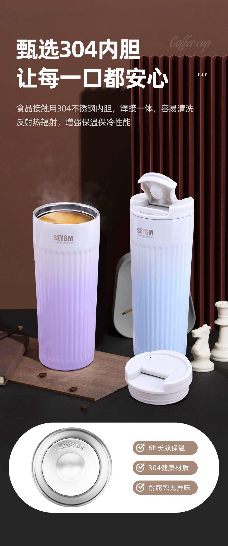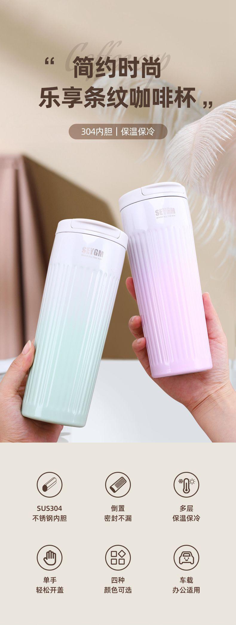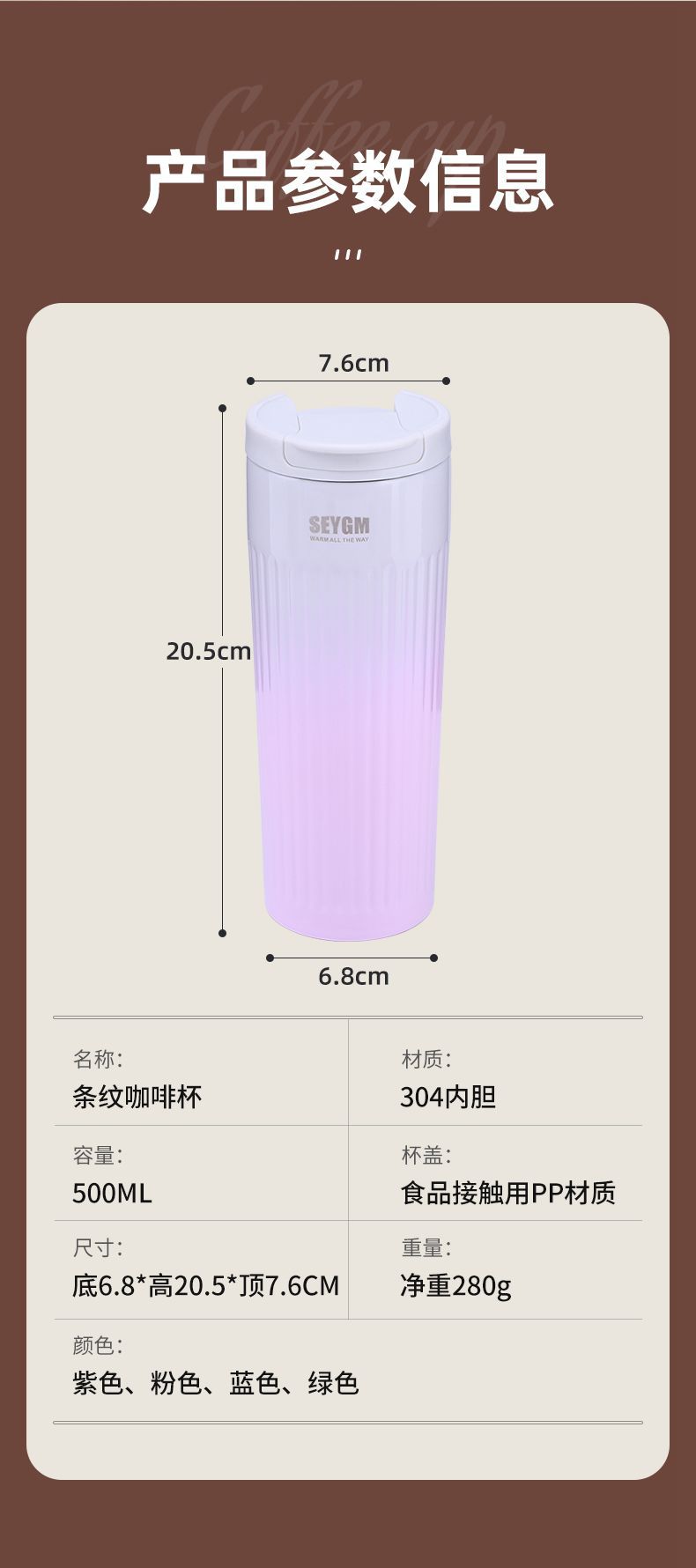 Taza de café a rayas, termo de acero inoxidable 304, para coche, portátil, para estudiantes, venta al por mayor