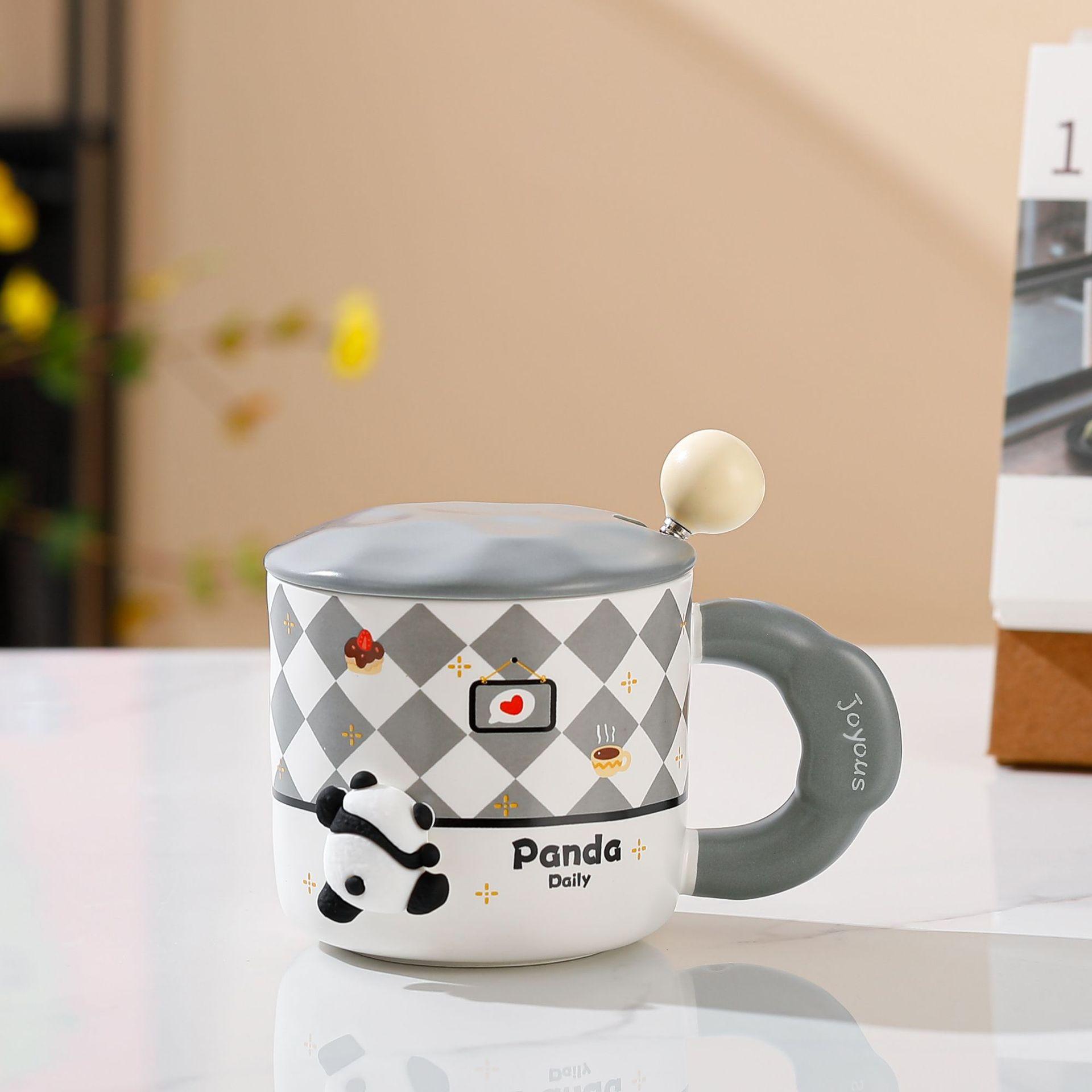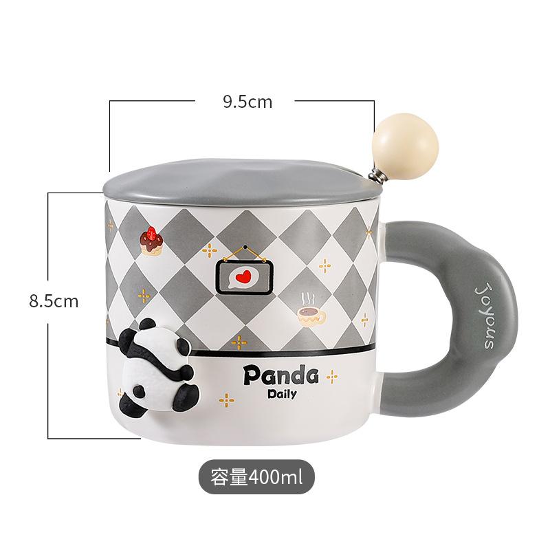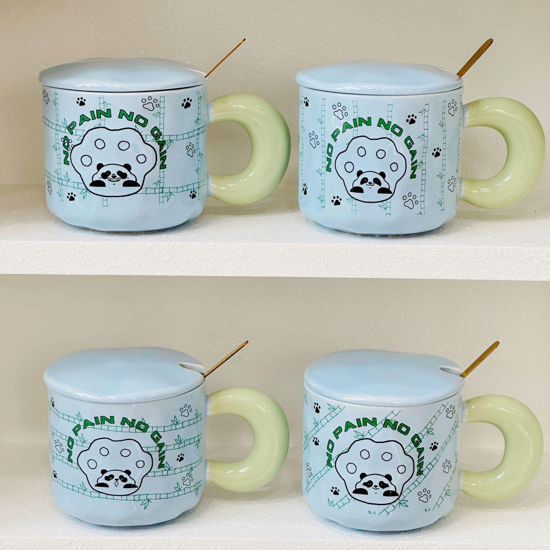 Oblique bamboo panda with lid spoon ceramic cup