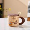 Vertical bamboo panda with lid spoon ceramic cup