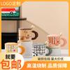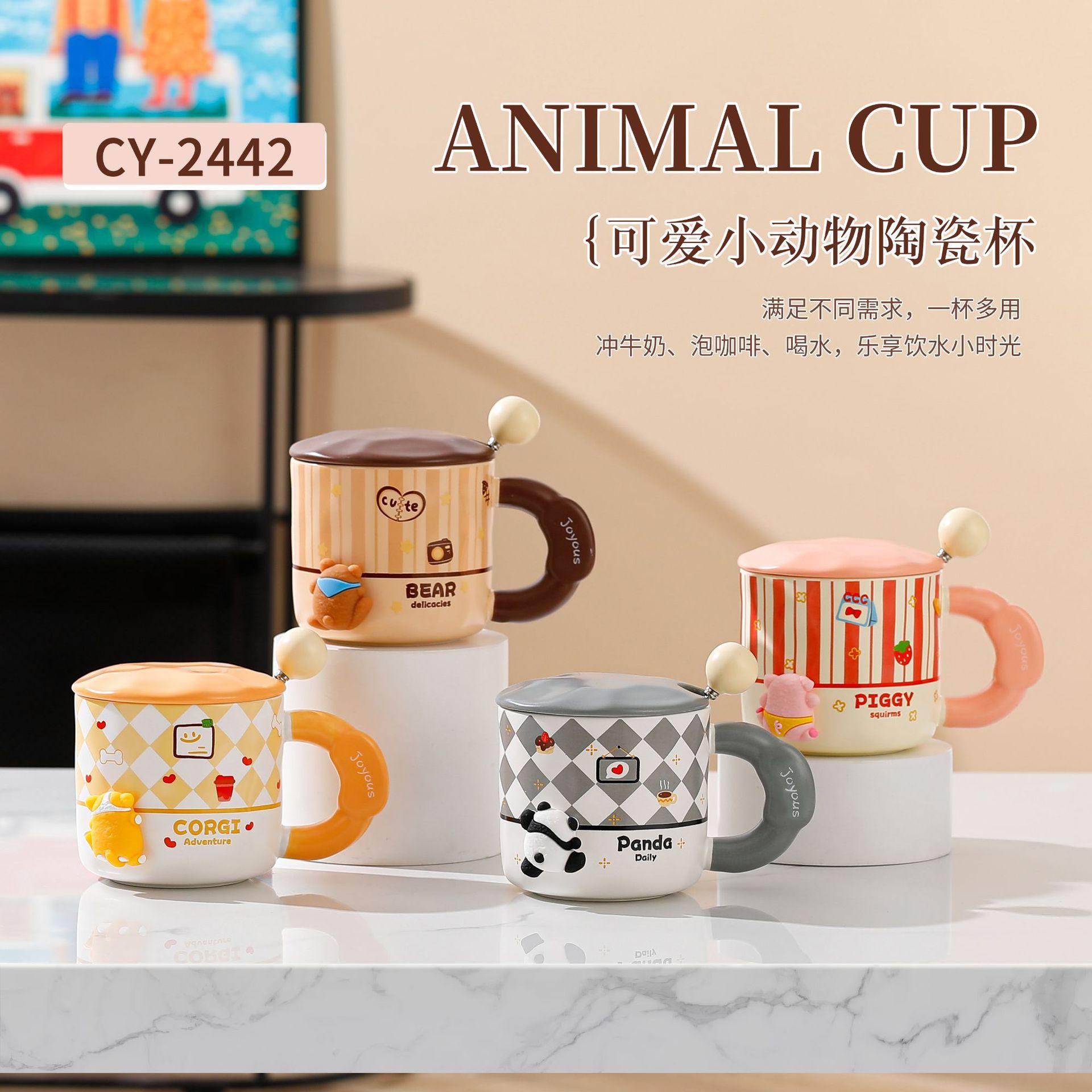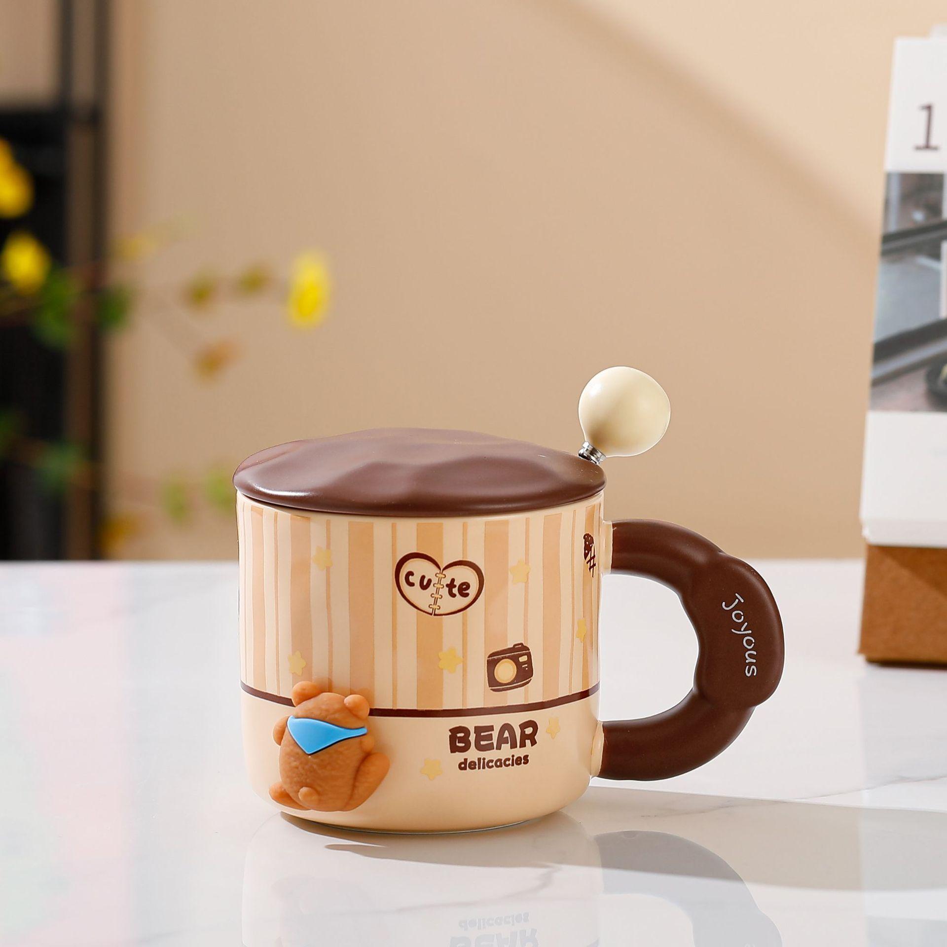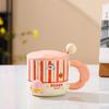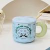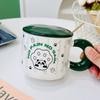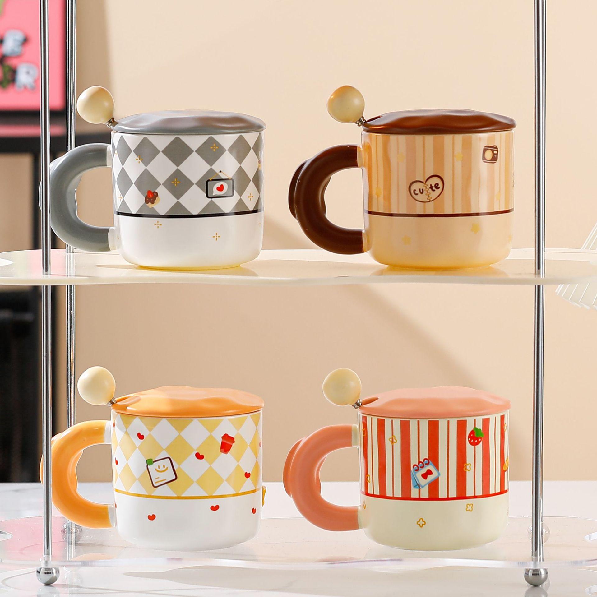 Bonita taza de cerámica con dibujos animados, de alto valor de color, para el hogar, para el desayuno, la leche, el café con tapa y cuchara.