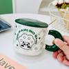 Bamboo green handle panda with lid spoon ceramic cup