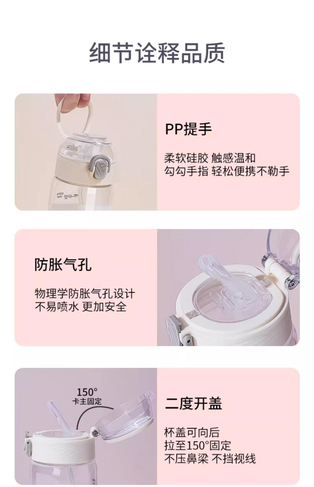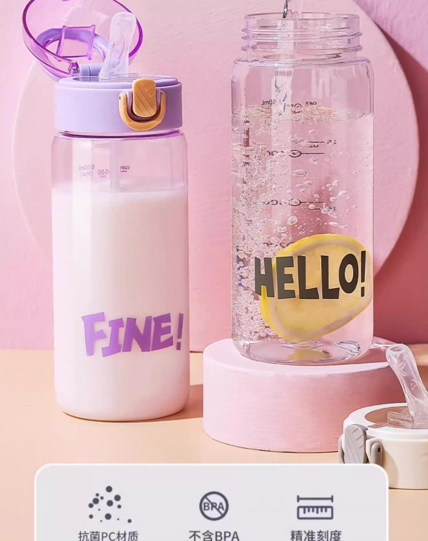Botella de Agua de Plástico Grueso de Doble Capa para Beber Directamente Multicolor