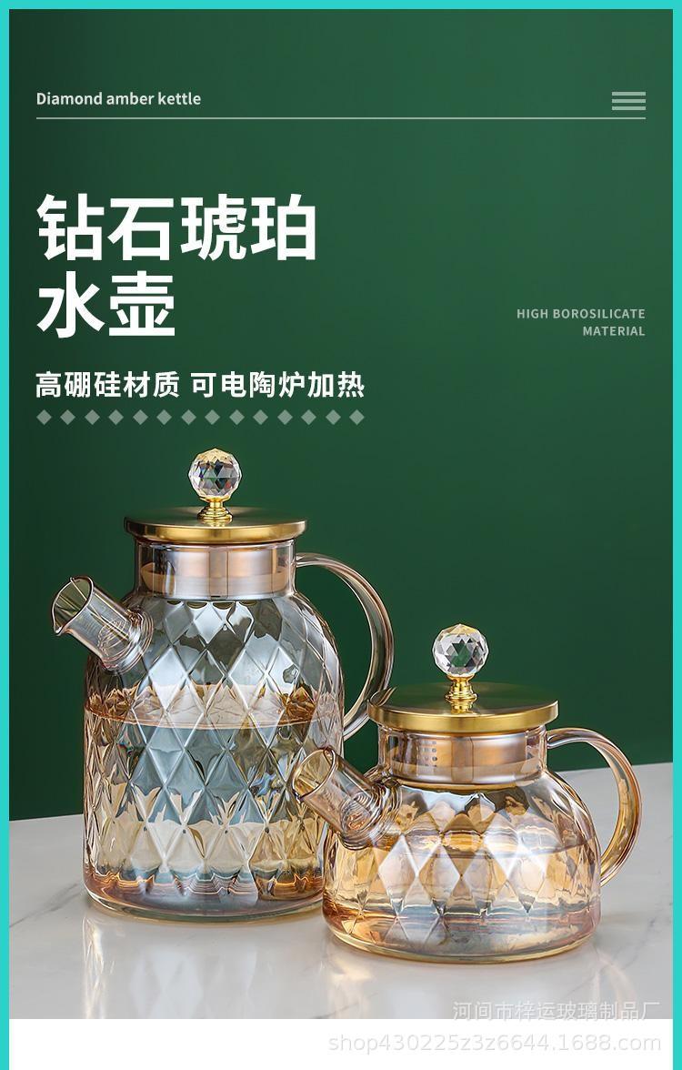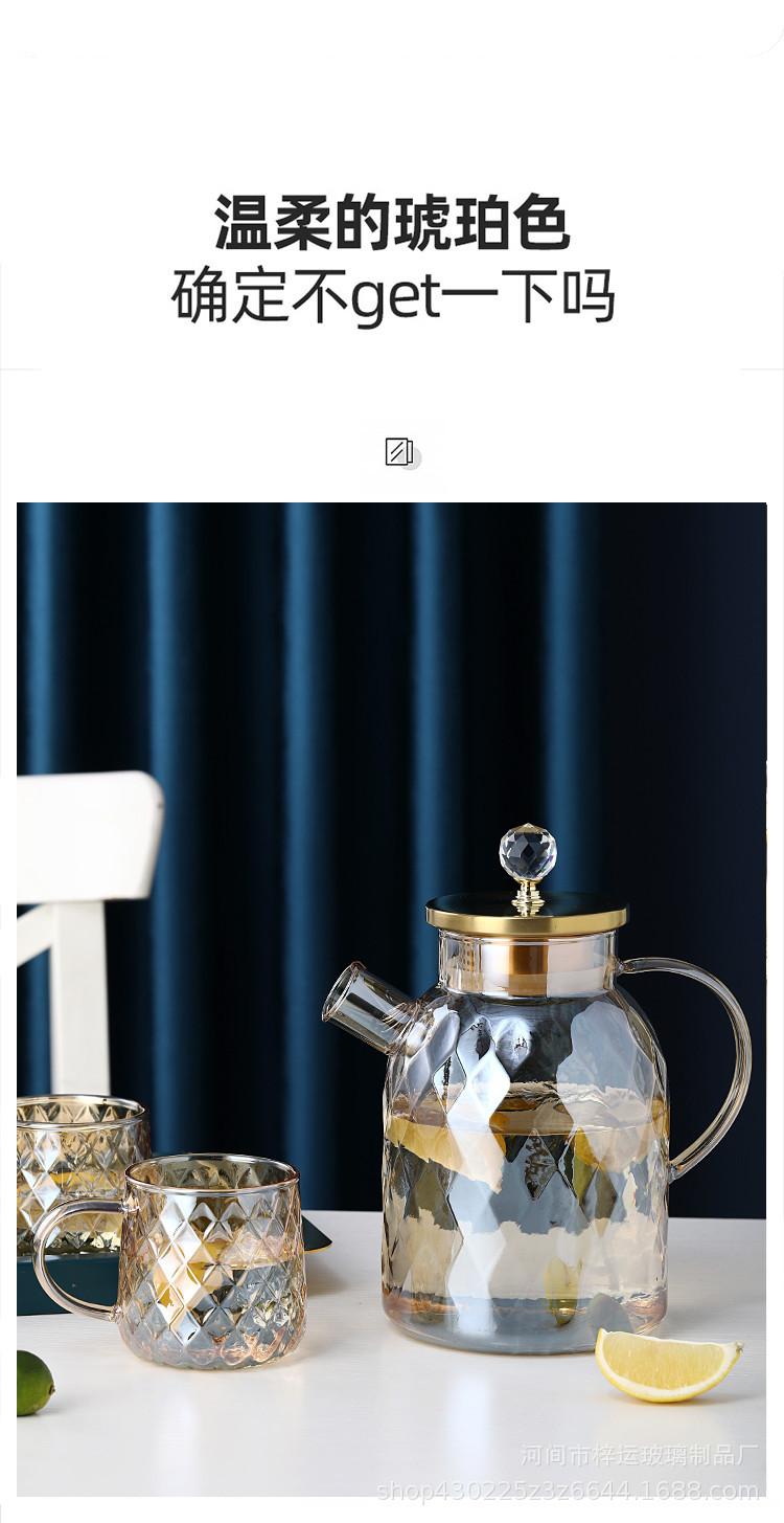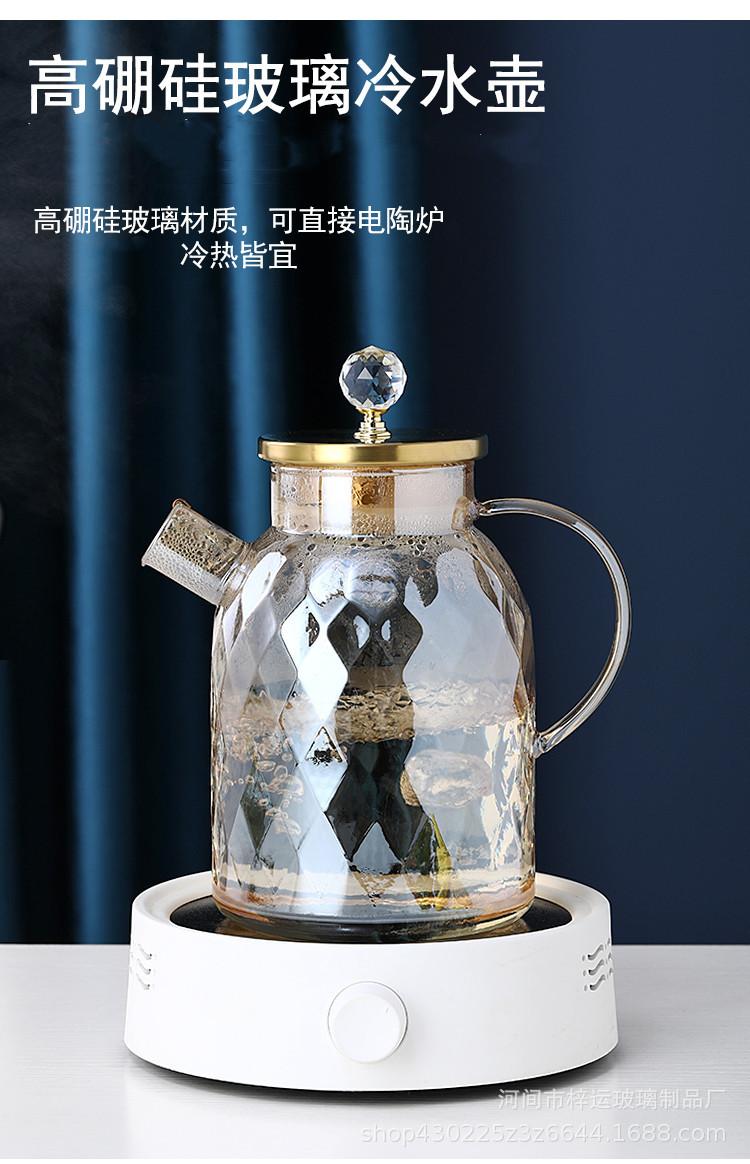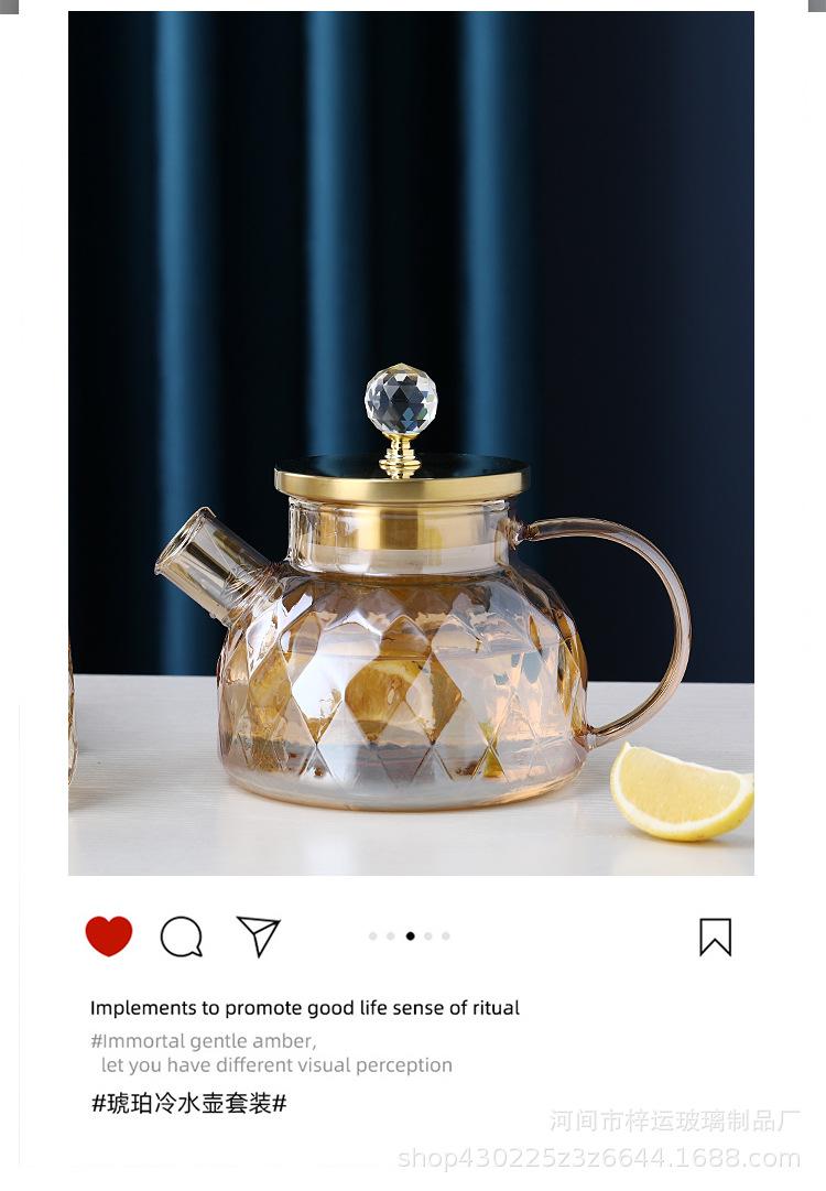 Hervidor de Agua Fría Vidrio Borosilicato Alto Ámbar Juego de Hervidor de Agua Lanling Gran Capacidad Tapa Dorada Hervidor de Agua para Jugo Bebida Hervidor de Agua Fría