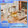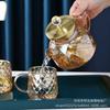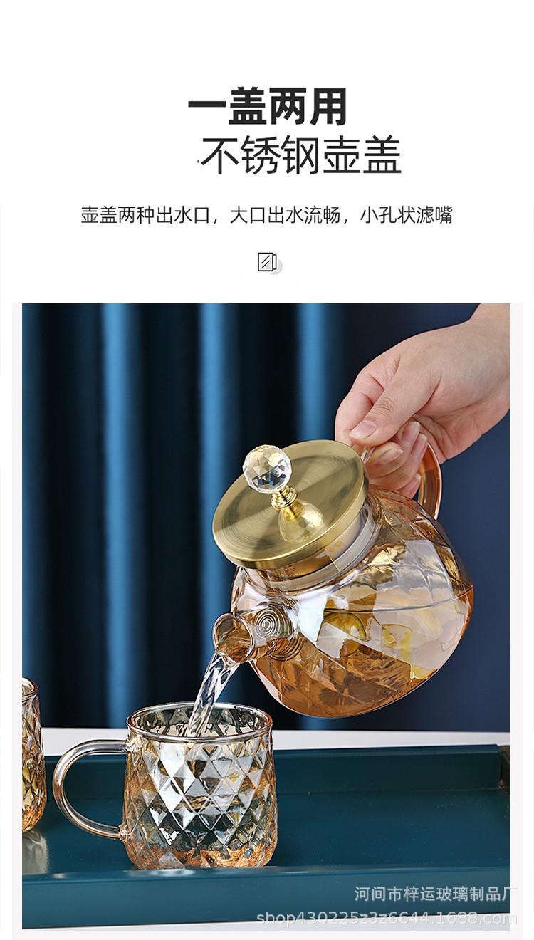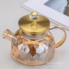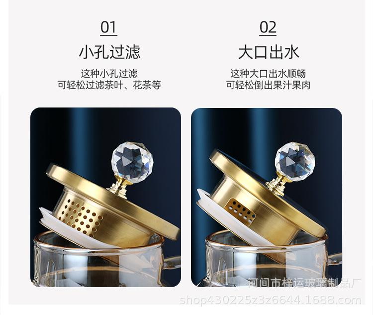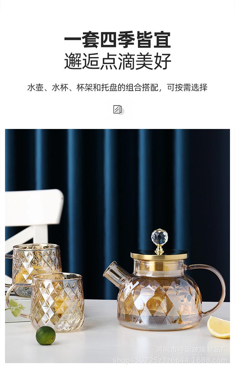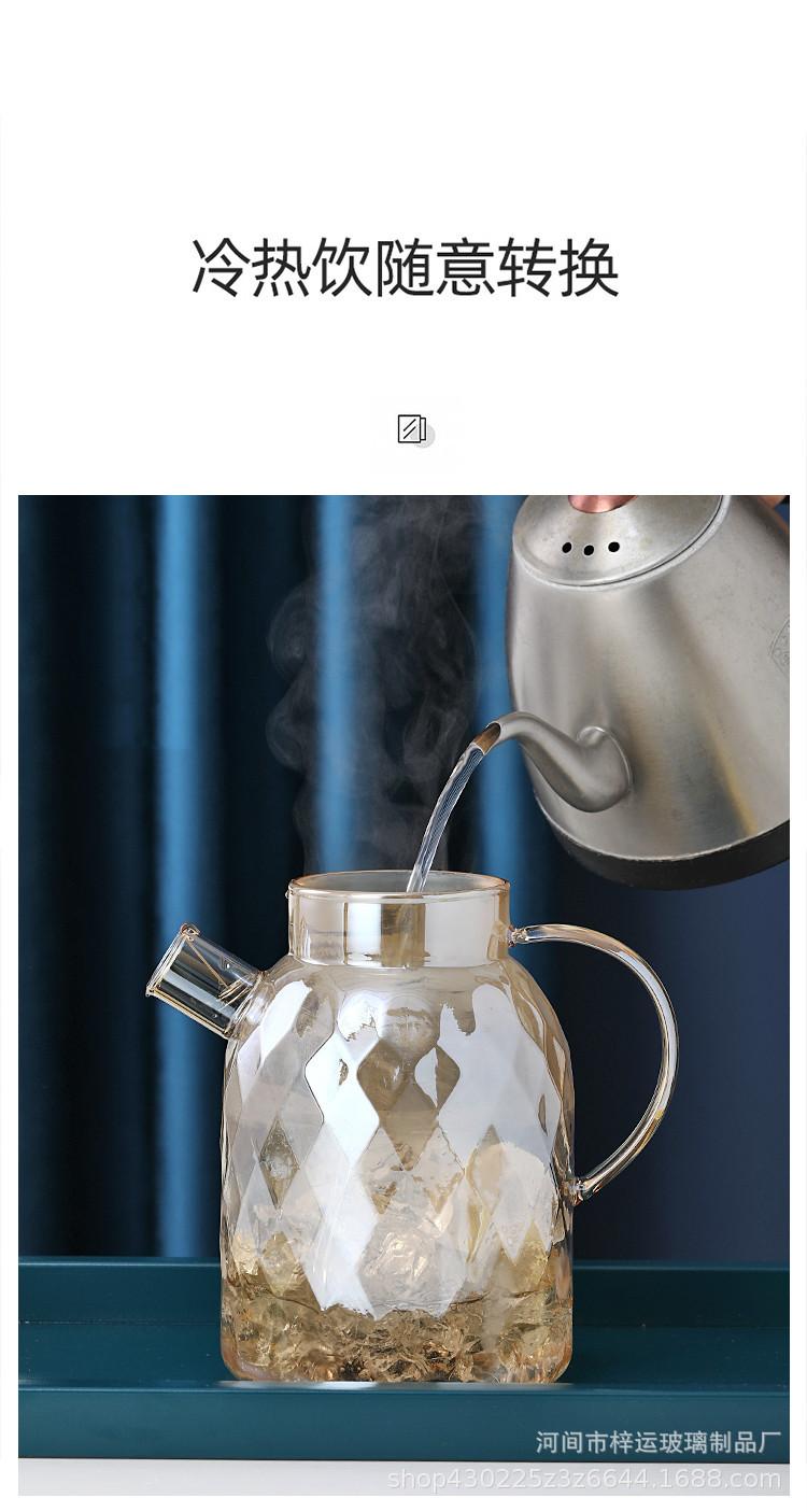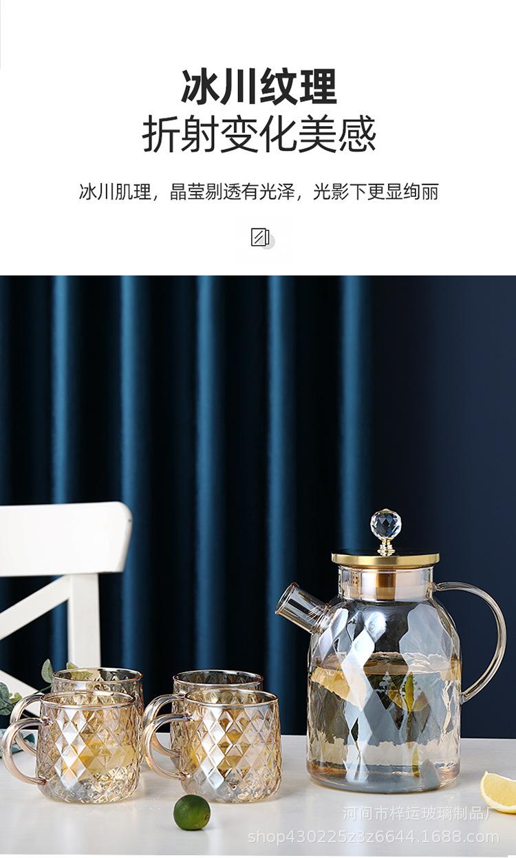 Hervidor de Agua Fría Vidrio Borosilicato Alto Ámbar Juego de Hervidor de Agua Lanling Gran Capacidad Tapa Dorada Hervidor de Agua para Jugo Bebida Hervidor de Agua Fría