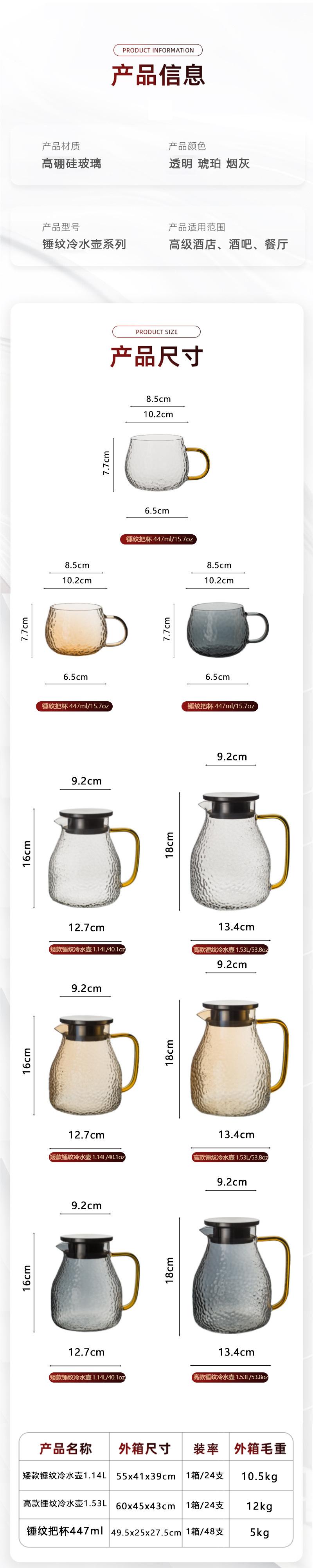 Gran Capacidad Alto Borosilicato Cold Brew Hervidor de Agua Fría Juego de Hervidor de Agua Martillado Jarra de Jugo para el Hogar Taza con Patrón Martillado Venta al por Mayor