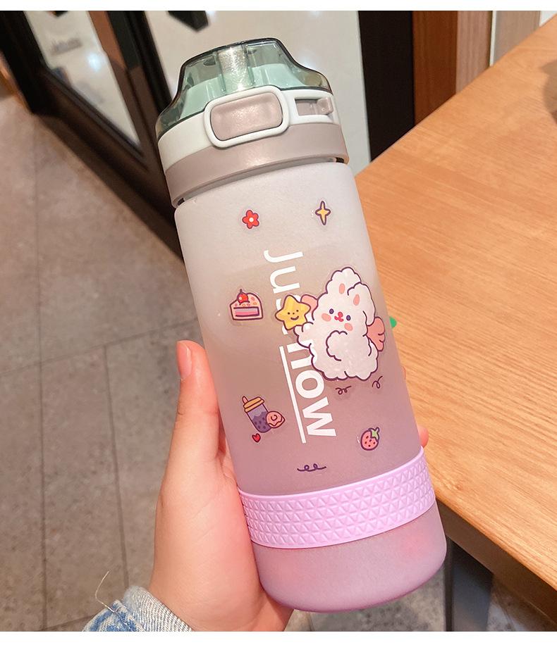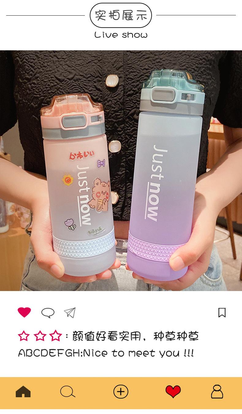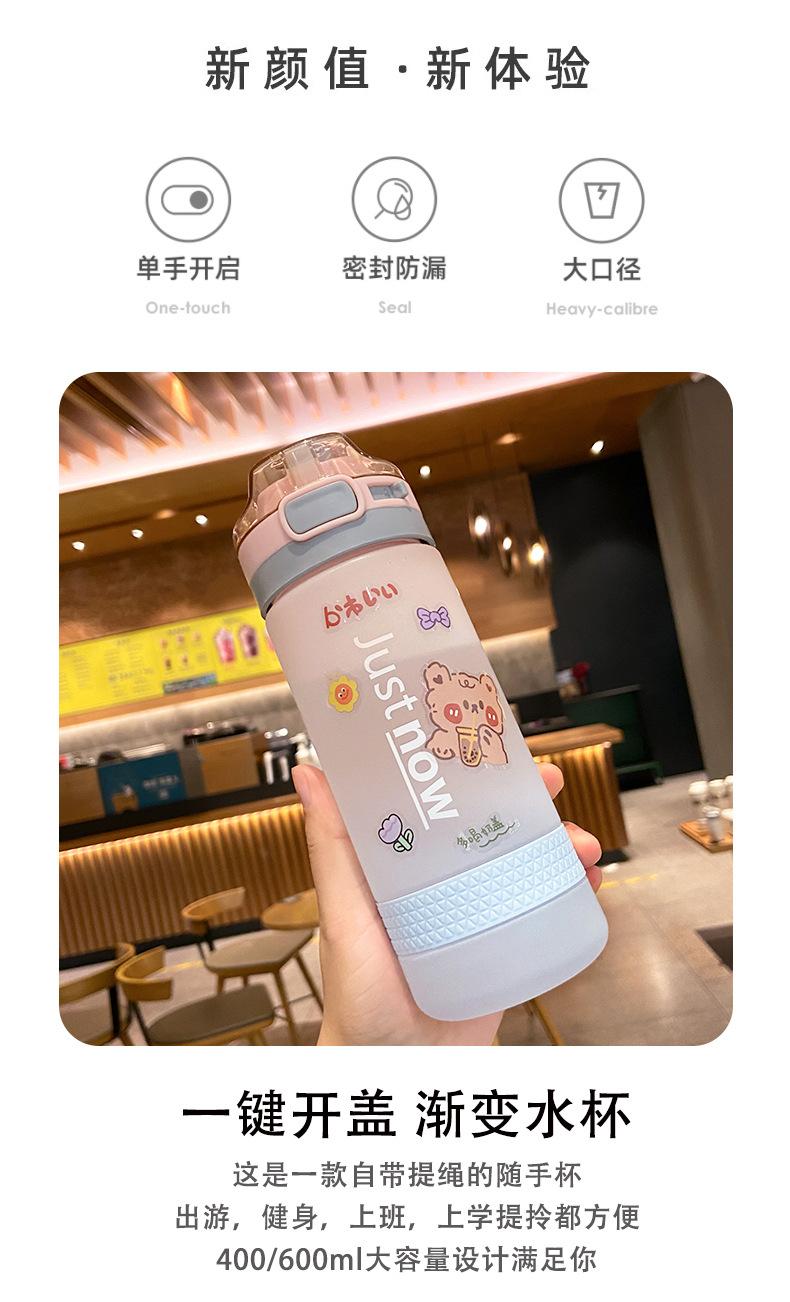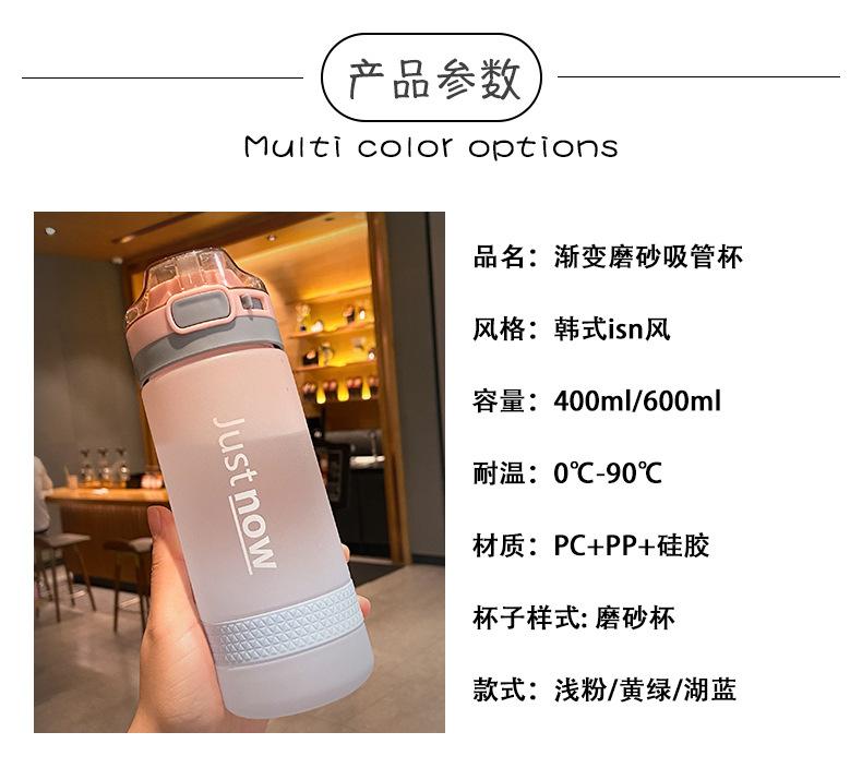 Taza de agua con gradiente de aspecto alto, estilo ins de verano para mujer, taza de plástico para estudiantes, resistente a caídas, de gran capacidad, portátil, con pajita esmerilada