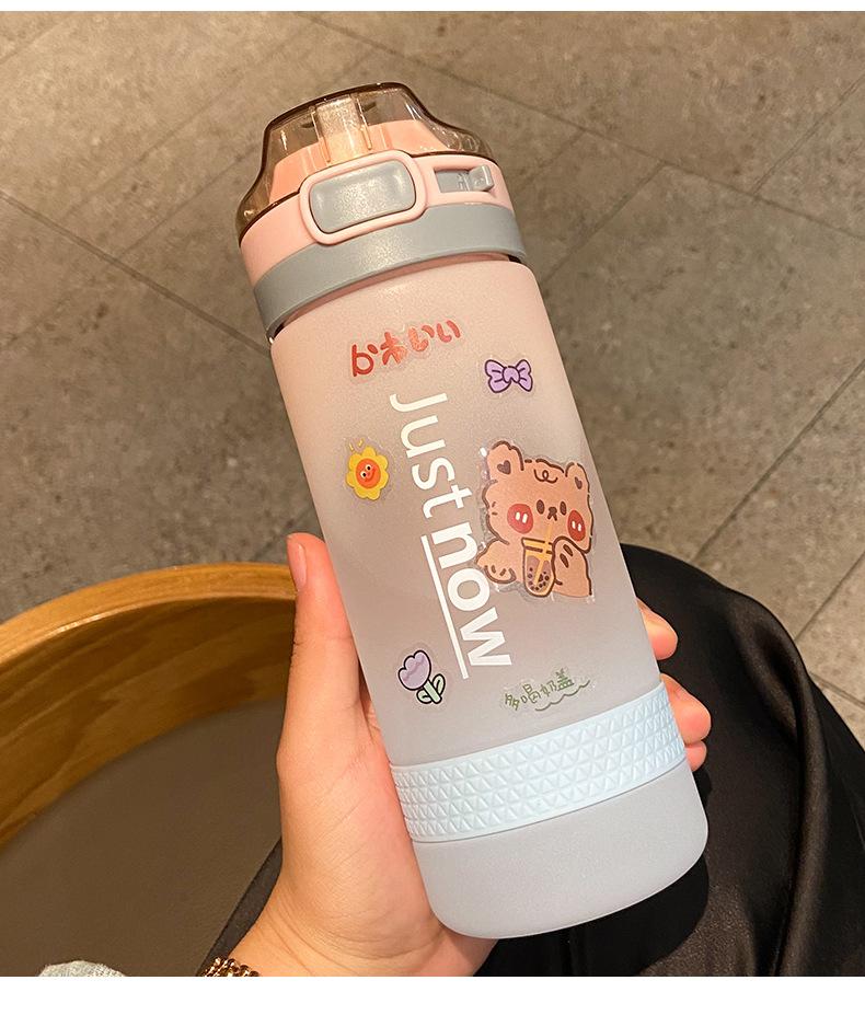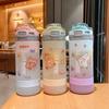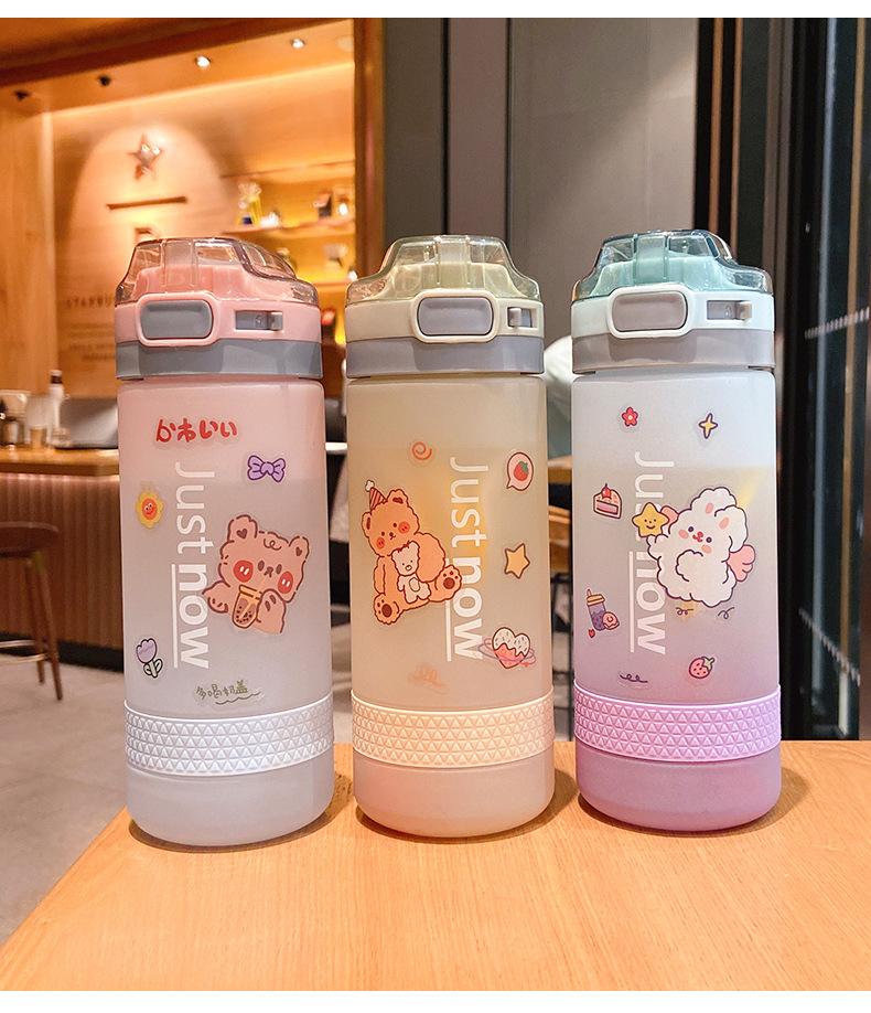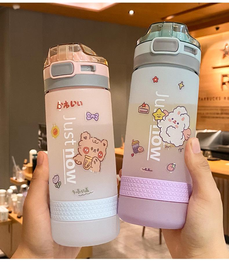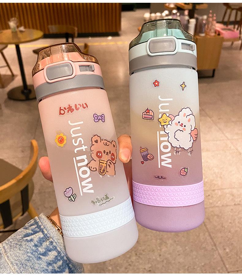 Taza de agua con gradiente de aspecto alto, estilo ins de verano para mujer, taza de plástico para estudiantes, resistente a caídas, de gran capacidad, portátil, con pajita esmerilada