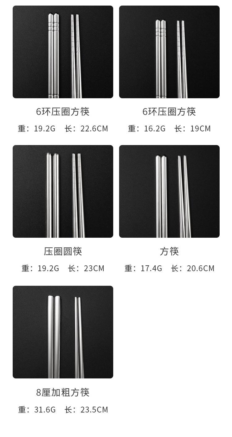 Básicamente, todos los palillos de acero inoxidable del mercado están disponibles. Si los necesitas, puedes tomarles una foto o contactar con atención al cliente.