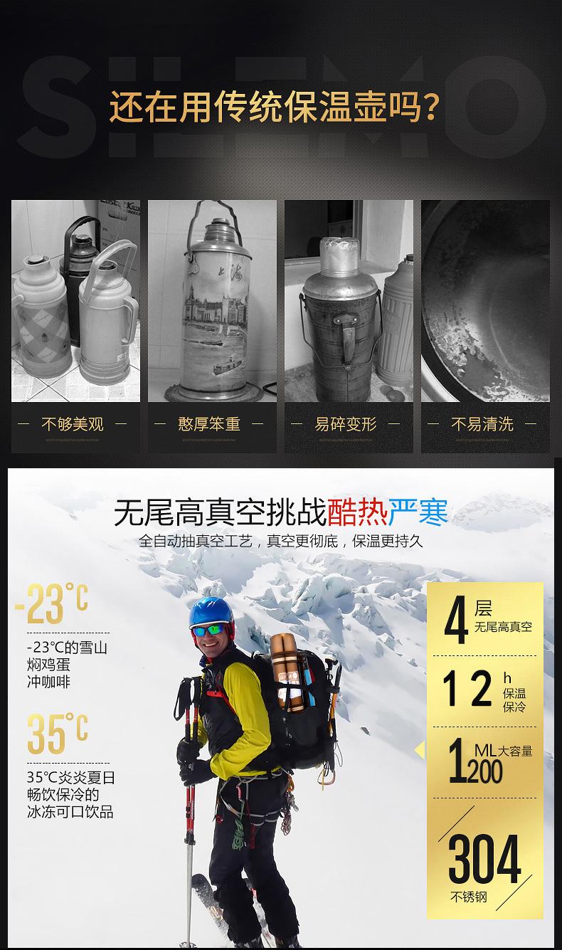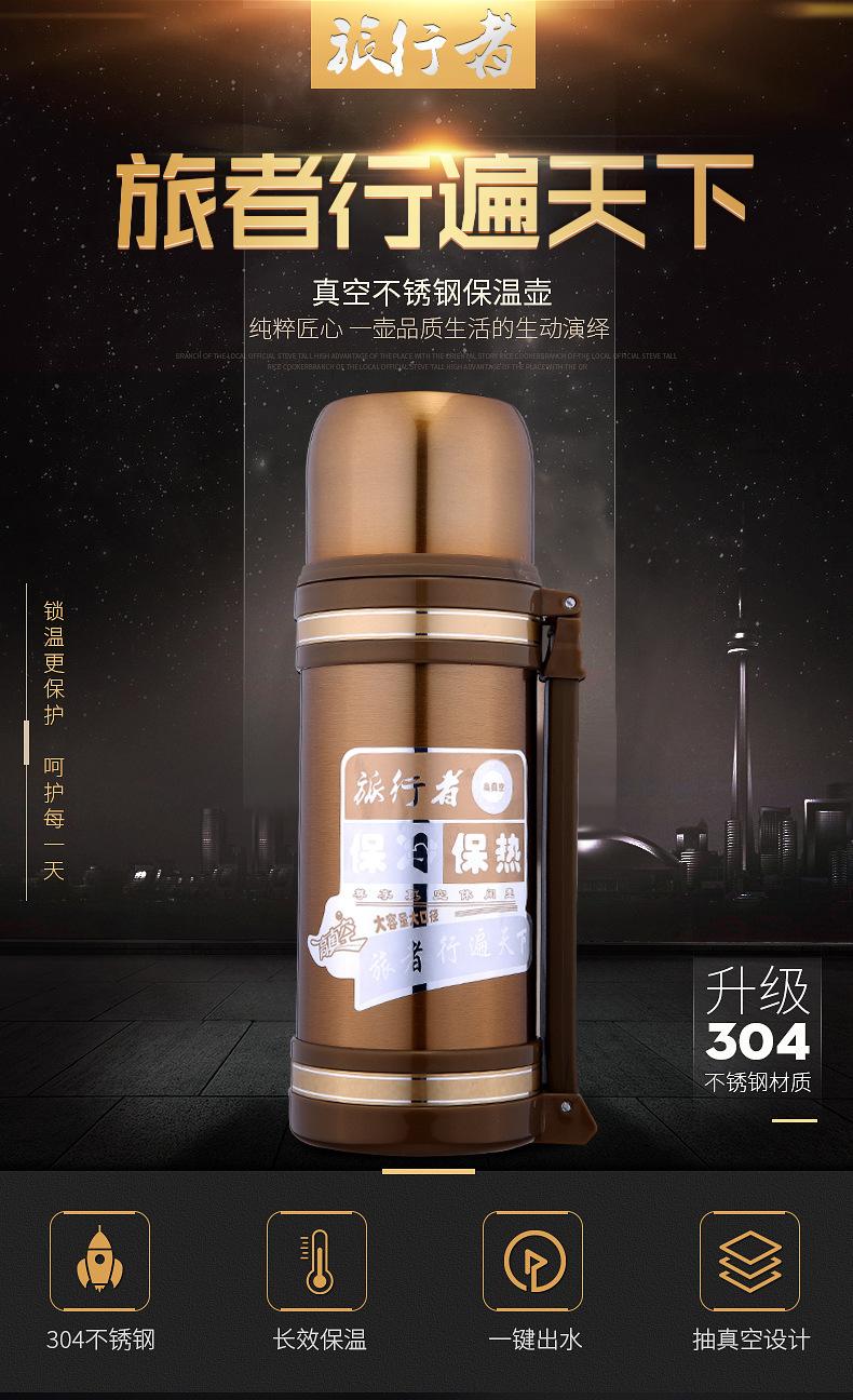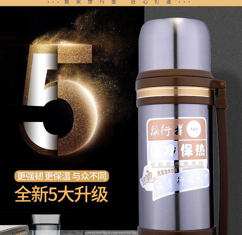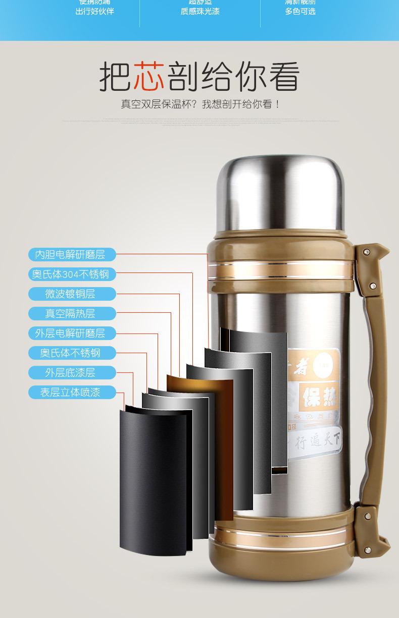 Olla de viaje aislada de acero inoxidable 304 de gran capacidad, portátil, para deportes al aire libre, para automóvil, con aislamiento al vacío, taza fría