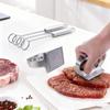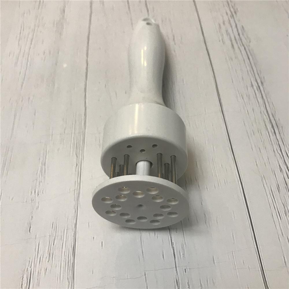 Función: Acortar el tiempo de cocción, ablandar la carne magra y ¡no se atasca en los dientes! Más conveniente de usar, los dientes están hechos de acero inoxidable. Al usarlo, sus manos no deben colocarse en la salida de la aguja para evitar lesiones innecesarias. Por favor, no permita que los niños lo usen para jugar.