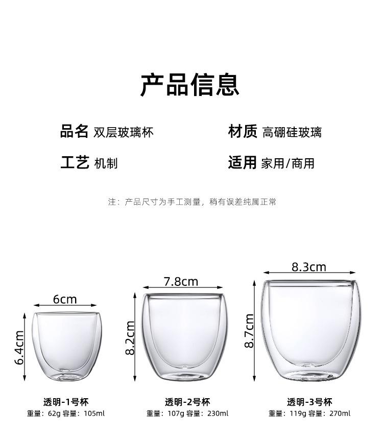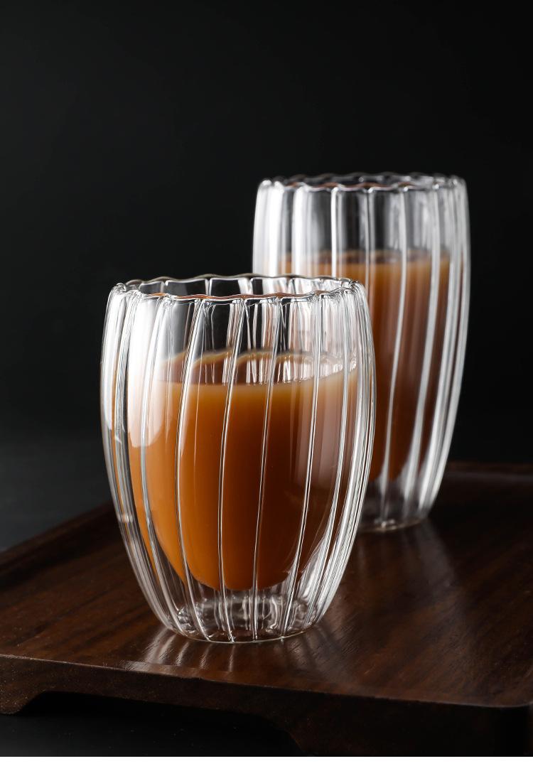 Taza de vidrio aislante de doble capa para el hogar, de aspecto elegante, resistente a altas temperaturas, hecha a mano, para té, con asa comercial, para leche y café