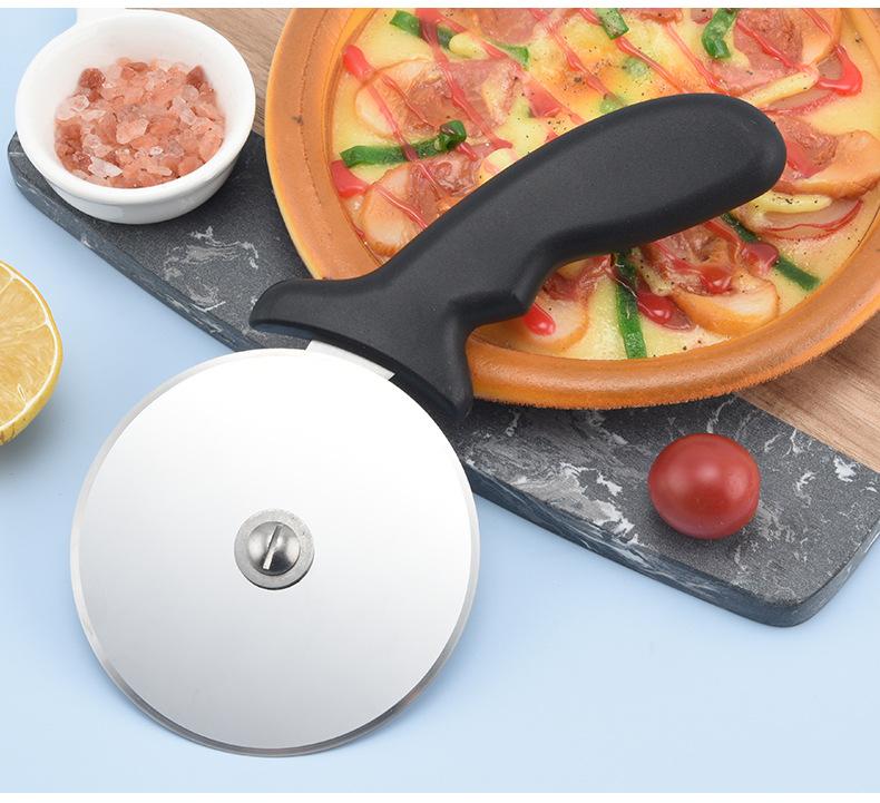 Cuchillo para pizza de acero inoxidable con mango de caballito de mar, cortador de pizza de una sola rueda, herramientas para hornear al por mayor