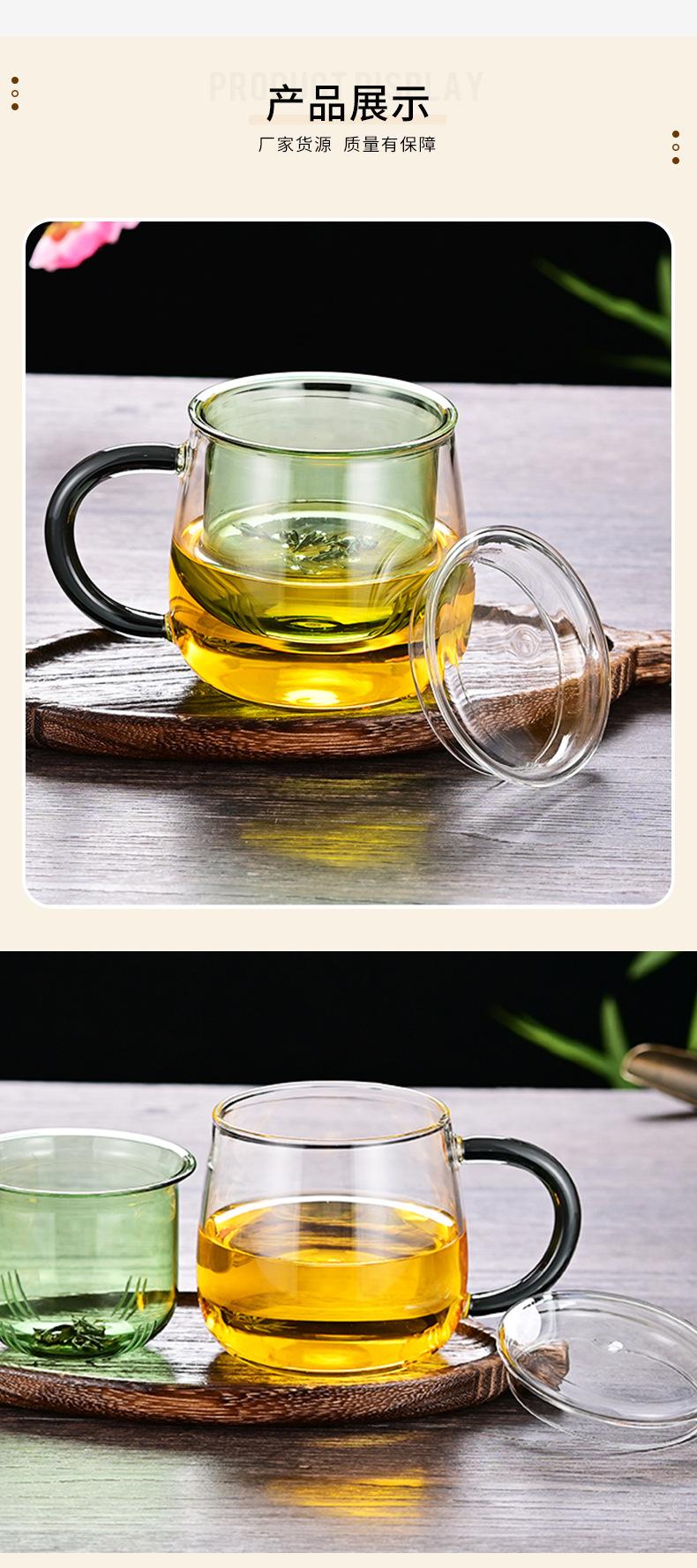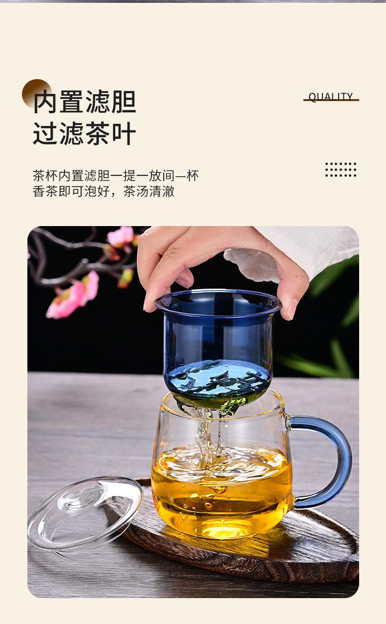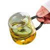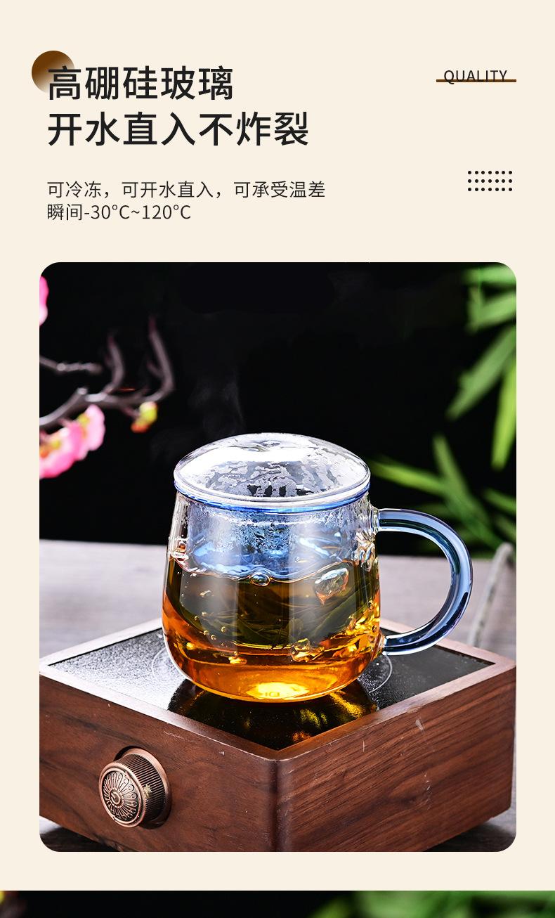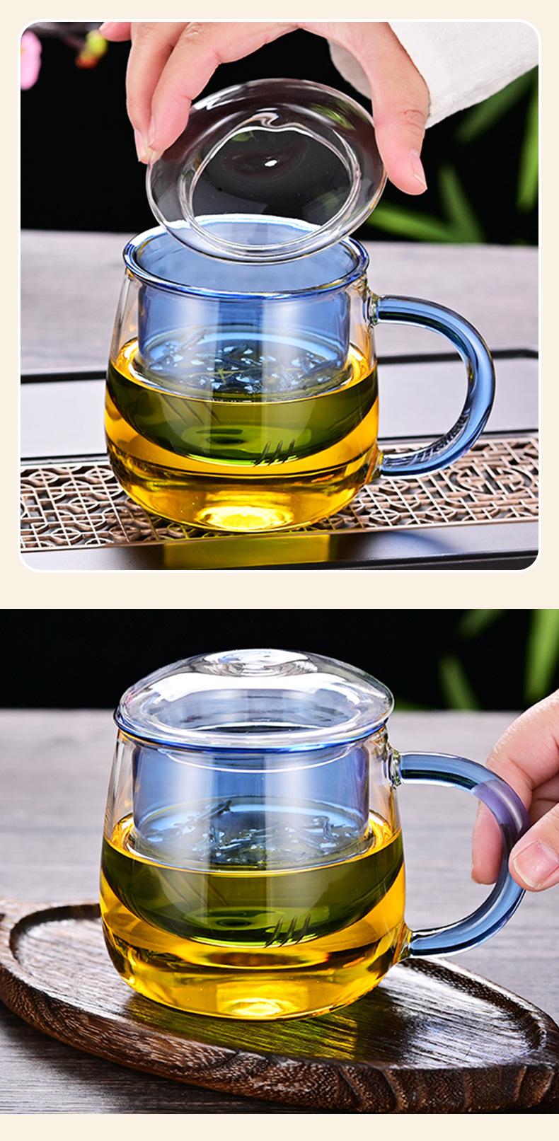 Taza de té de vidrio engrosado con flores, transparente, resistente al calor, fácil de limpiar, juego de té con filtro para el hogar y la oficina, con tapa.
