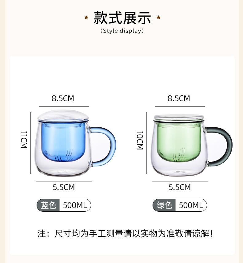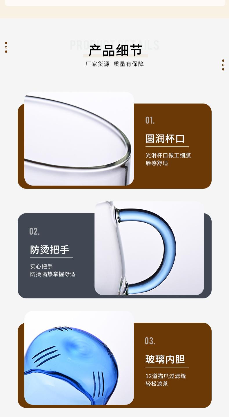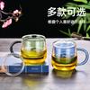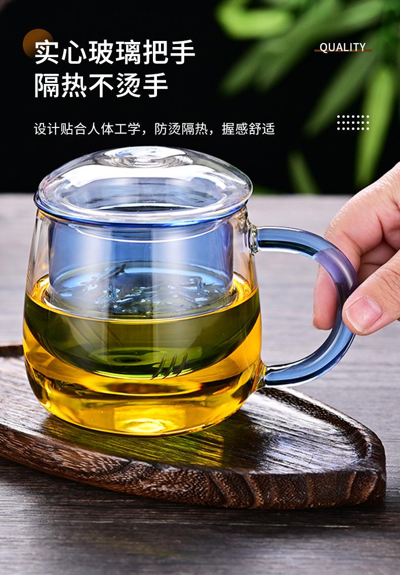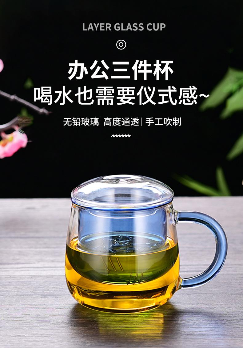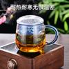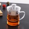 Taza de té de vidrio engrosado con flores, transparente, resistente al calor, fácil de limpiar, juego de té con filtro para el hogar y la oficina, con tapa.