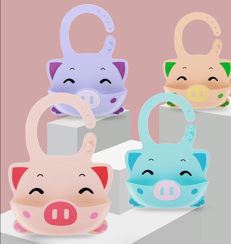 Nuevo Babero de Silicona Transfronterizo Cerdito de Dibujos Animados Bebé Comiendo Bolsa de Arroz de Silicona Impermeable Anti-Suciedad Babero de Silicona al por Mayor