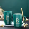 Taza de cerámica personalizada con tapa y cuchara, taza creativa, taza de café para el hogar para hombres y mujeres, regalo para parejas, taza para beber desayuno