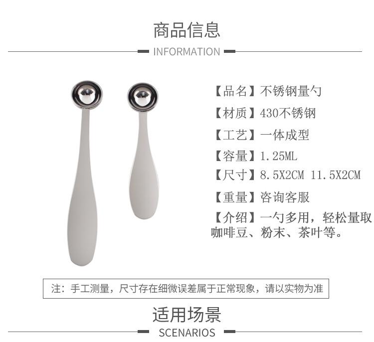 Compra Cuchara medidora de café de acero inoxidable de 1,25 ml, cuchara medidora de leche en polvo, cuchara medidora de café en grano, cucharadita de leche tostada, cuchara para condimentar té al por mayor en Joom.pro