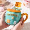Bonita taza de cerámica con dibujos animados Meow, taza para beber para el hogar, taza creativa para pareja, taza de café personalizada para oficina